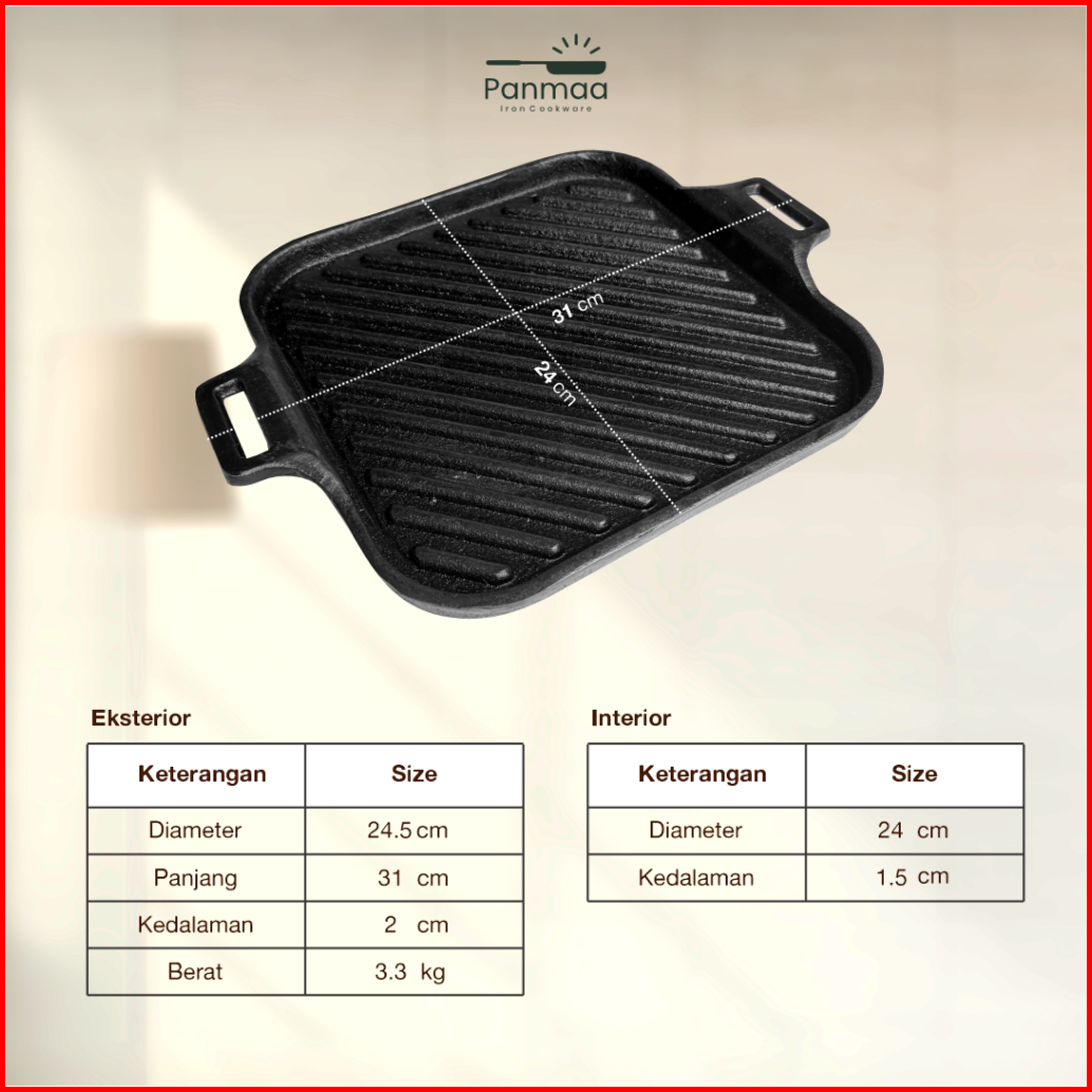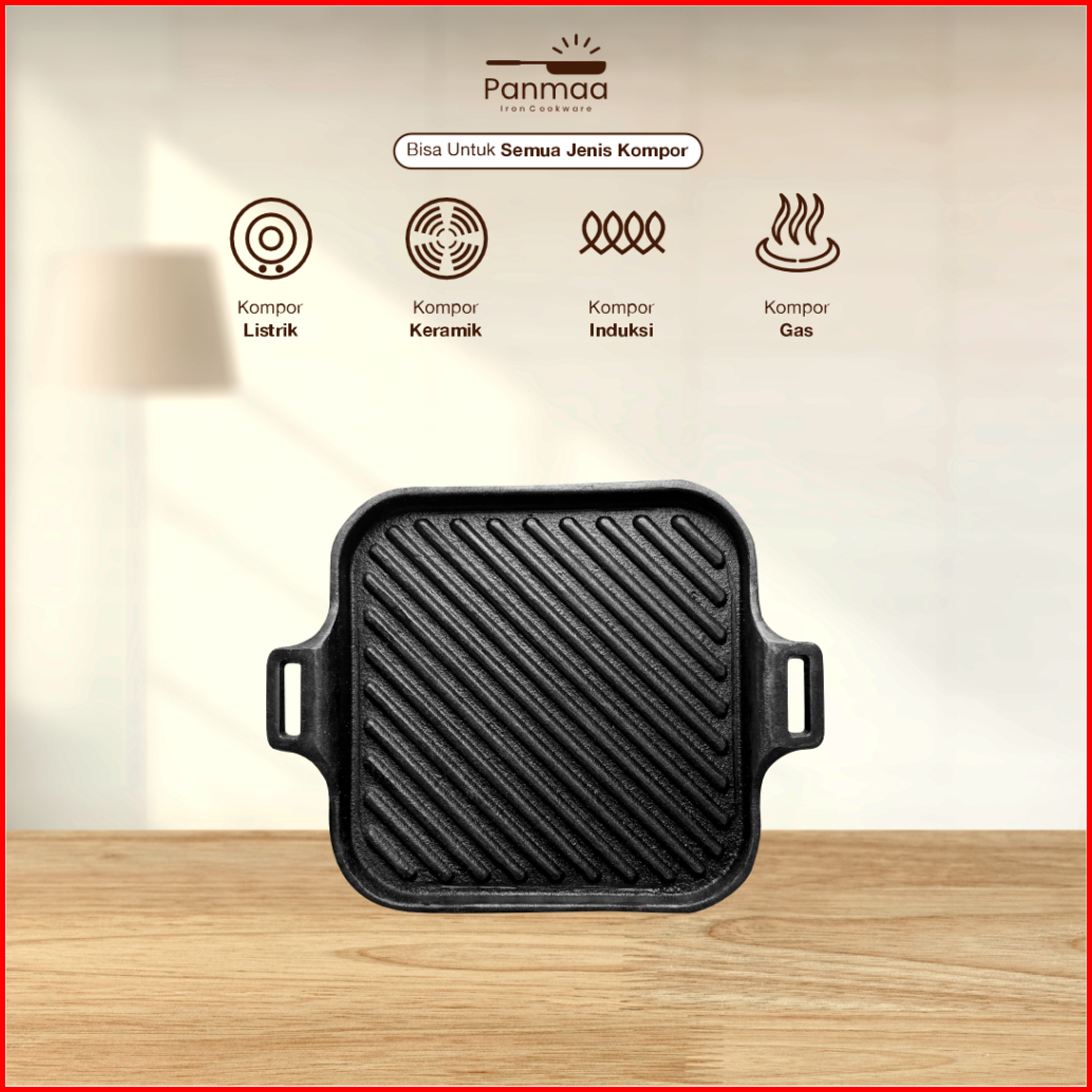 Grill Cast Iron Pemanggang Bbq 24 Cm Anti Lengket Yakiniku Grill Besi Cor