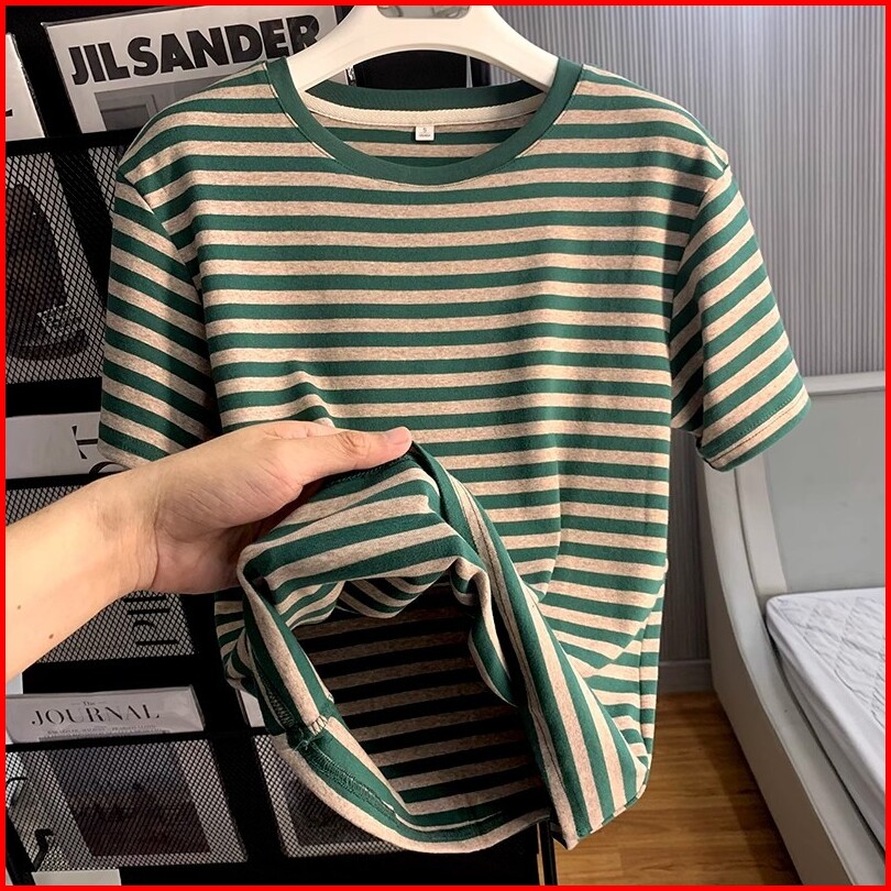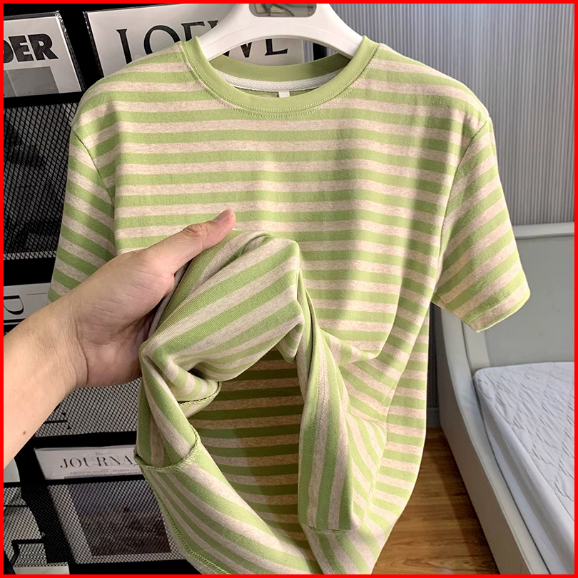 Kaos Lengan Oversize Longgar Bergaris Hijau Premium