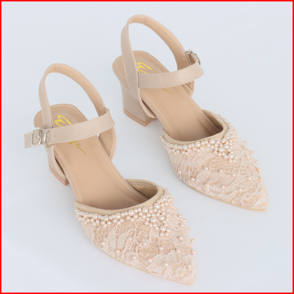 Sepatu Pengantin Wedding Shoes Brukat Payet Wanita Tali Gesper 5cm Emye