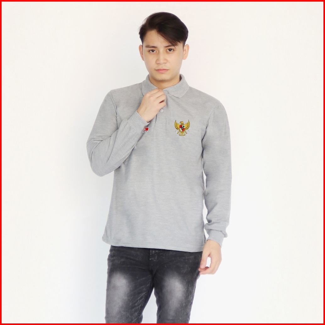 Kaos Kerah Pria Seragam Lengan Panjang Merah Putih Hari Kemerdekaan 17 Agustus Hut Ri Se Indonesia