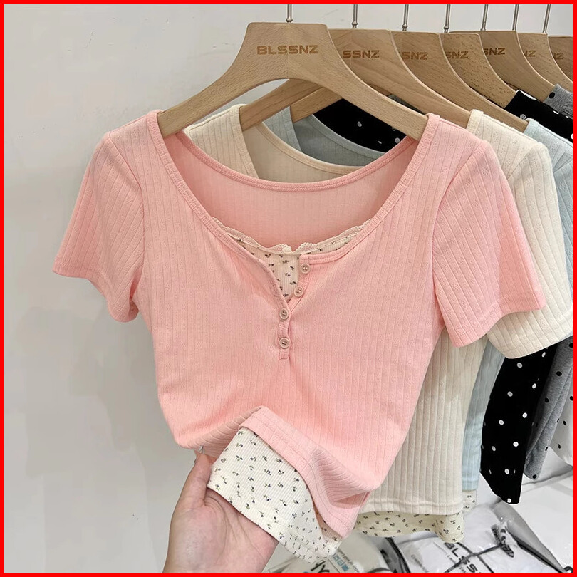 Kaos Motif Bunga Lengan Pendek Pink