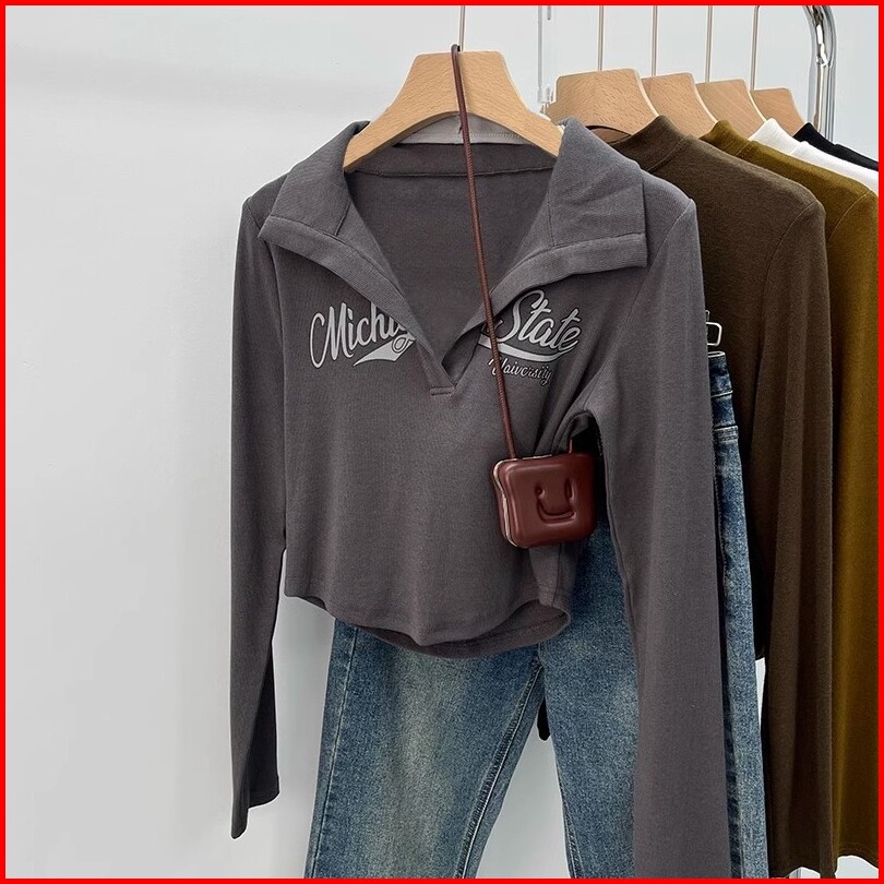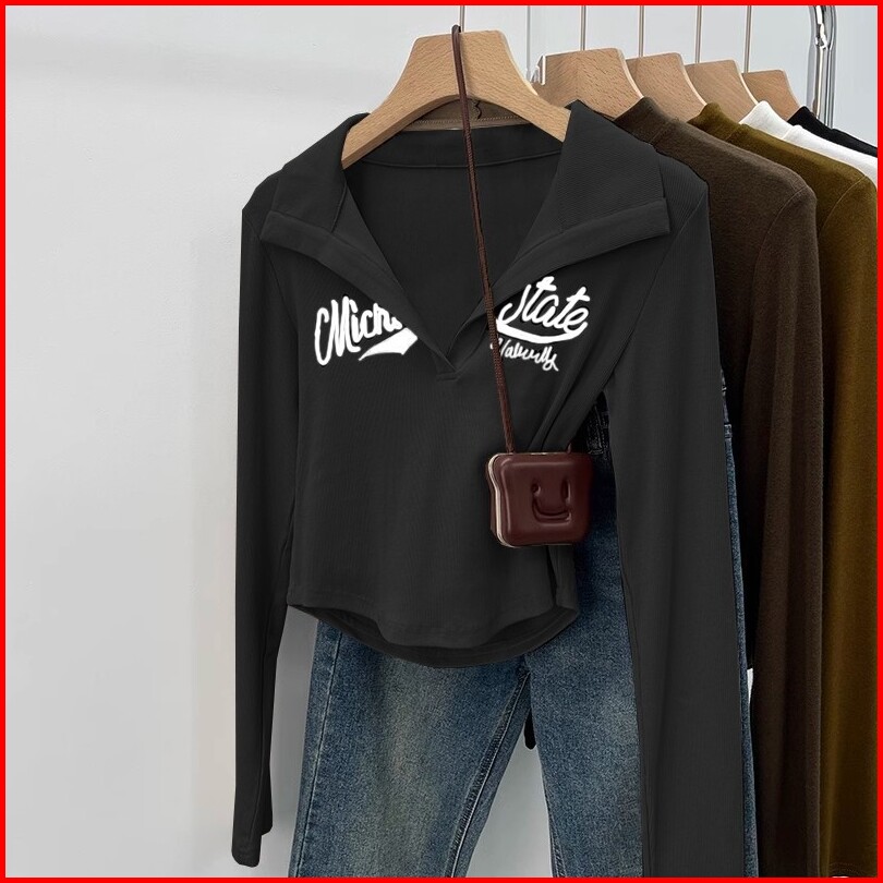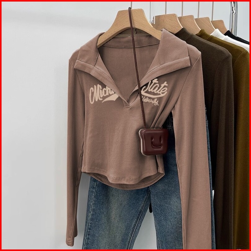 Kaos Lengan Panjang Kerah Polo Cokelat
