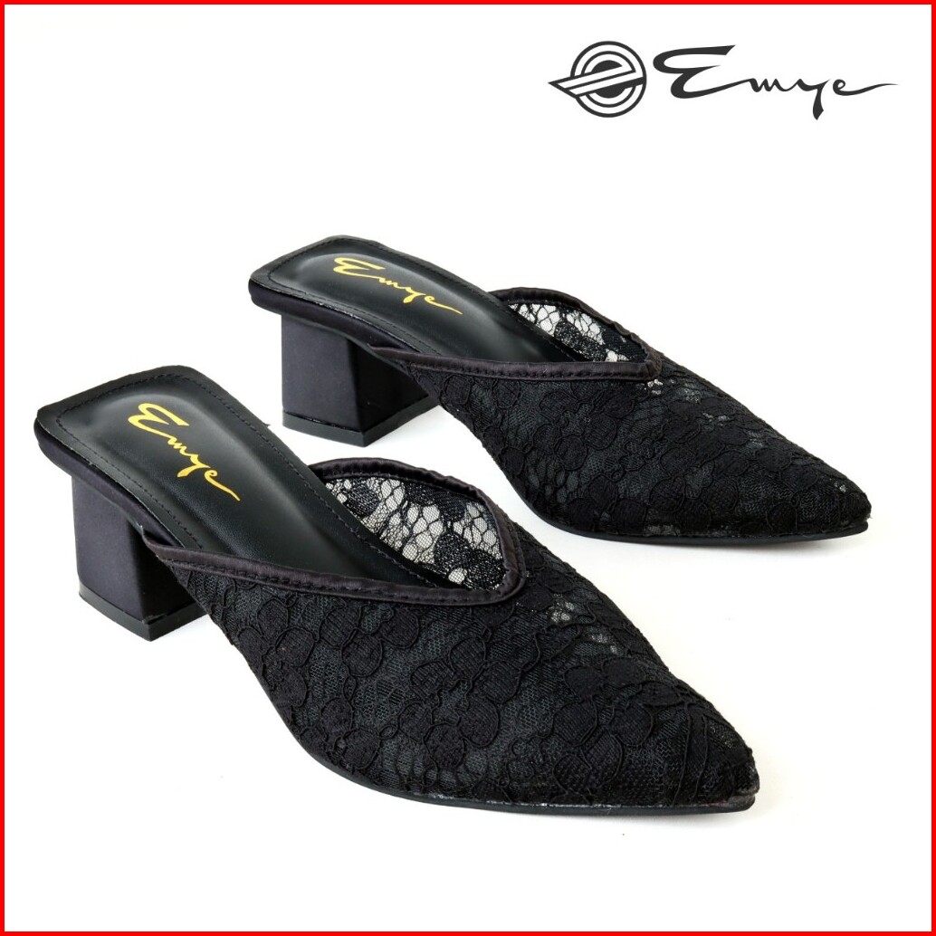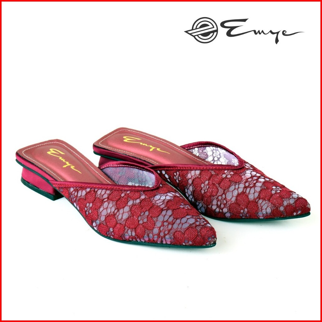Sandal Pesta Mules Kondangan Wanita Flatshoes Dan Heels Brukat Transparan 2cm Dan 5cm Mewah Kekinian Elegan
