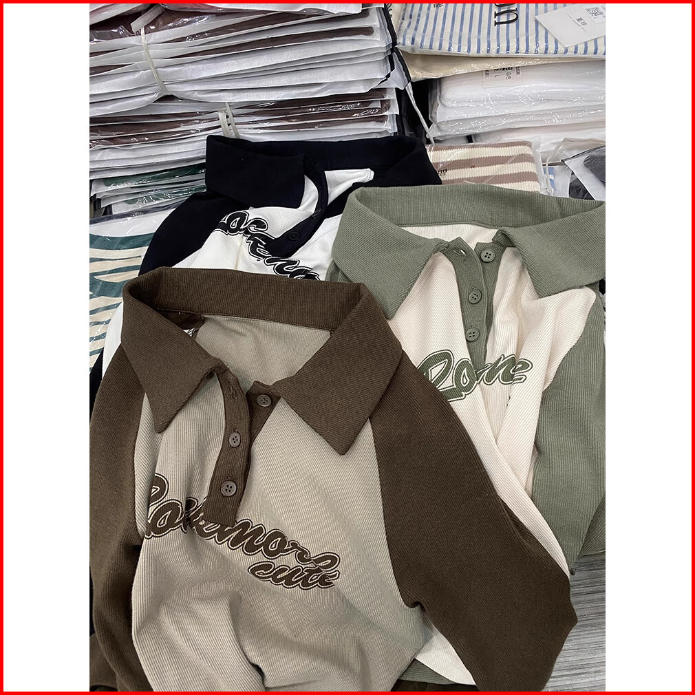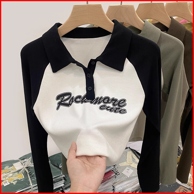Kemeja Polo Crop Lengan Panjang Warna Cokelat