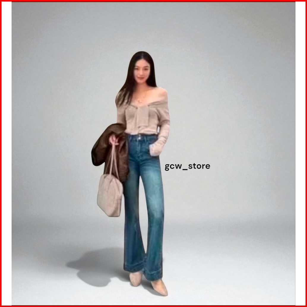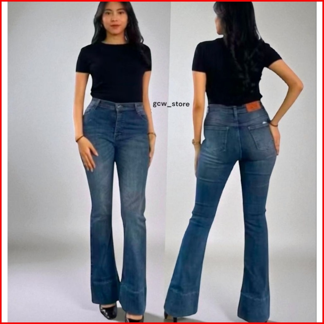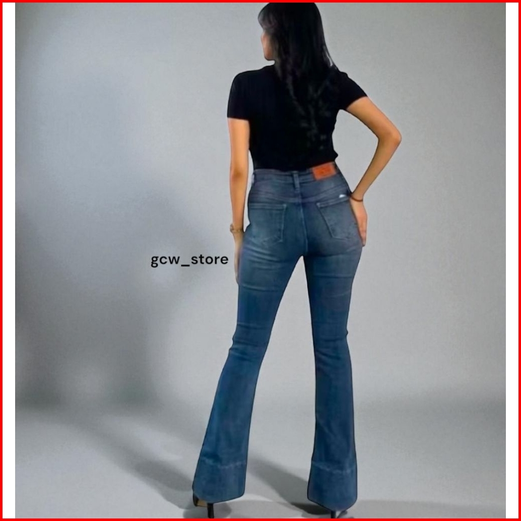 Jennie-highwaist Cutbray Jeans Celana Flare Panjang Stretch Wanita Retro Vintage Lipat Bawahwarna