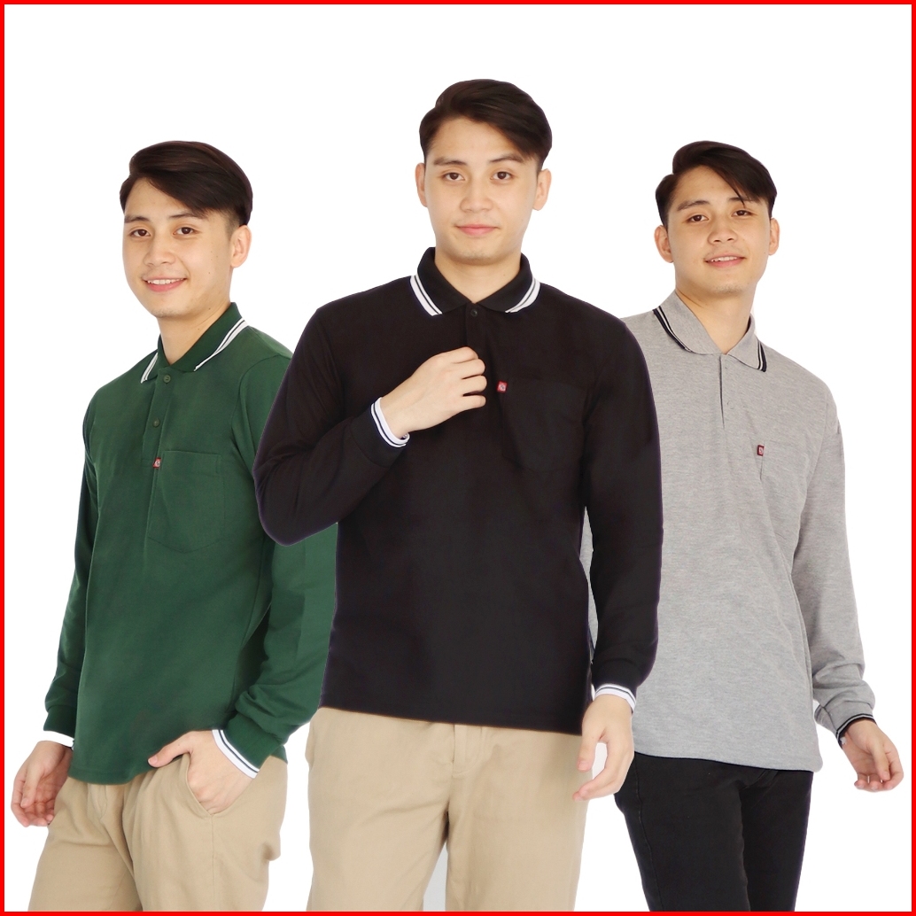 Liso Wear - Polo Saku Paket 3pcs Kaos Polo Shirt Seragam Polos Saku Kerah Pria Lengan Panjang