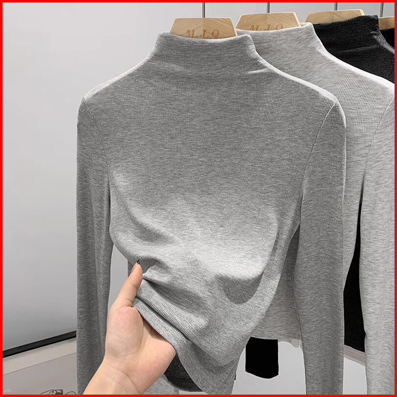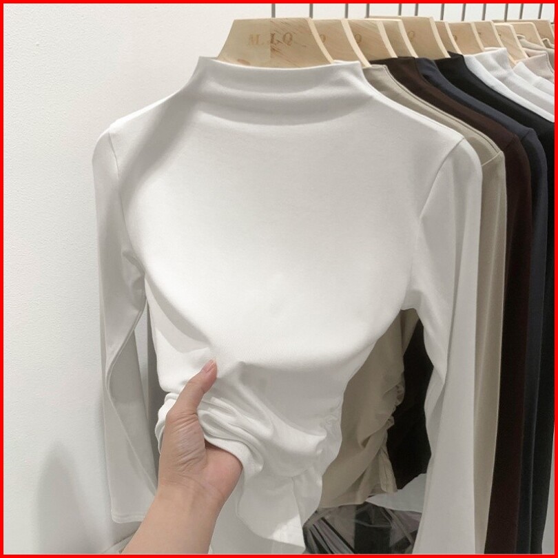 Kaos Putih Premium Lengan Panjang Setengah Turtleneck