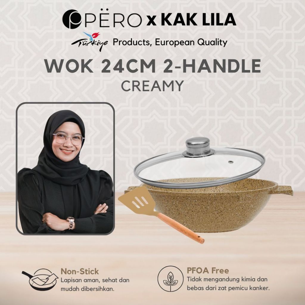 [Kak Lila] Pero Wok 24cm Biogranite 2 Handle Glass Lid with Spatula / Wajan Biogranite Anti Lengket Tutup Kaca Dengan Spatula