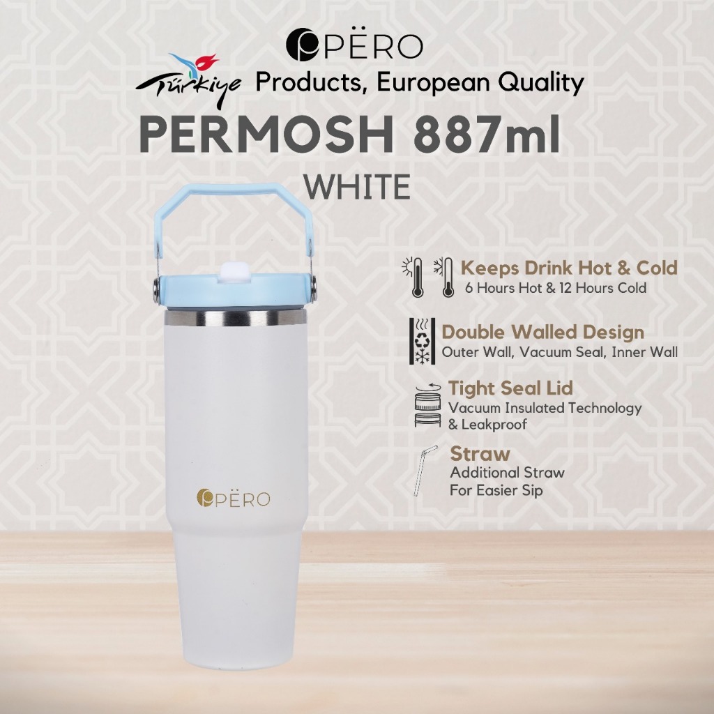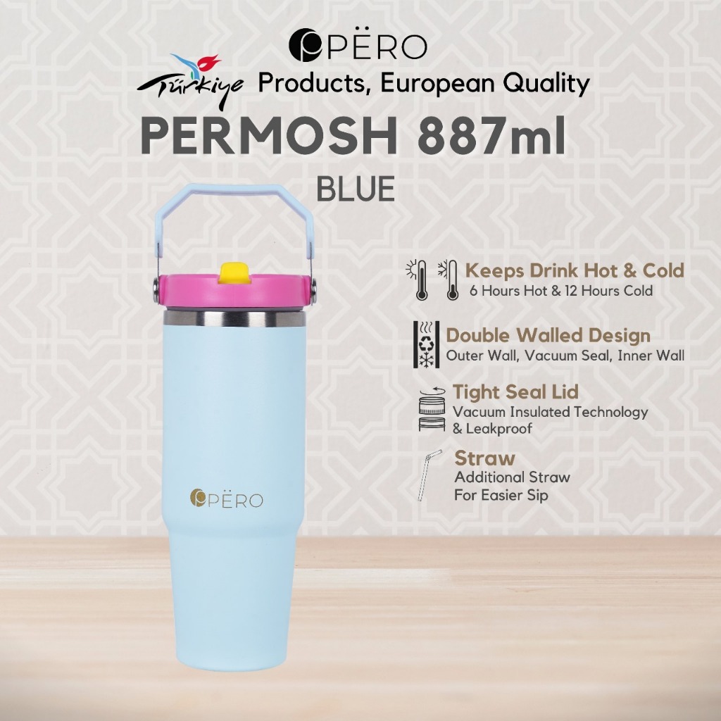 Pero Colorful Flip Straw Tumbler Permos 30oz 900ML with Handle / Botol Minum Tumbler Vakum Anti Panas dan Dingin 900ML