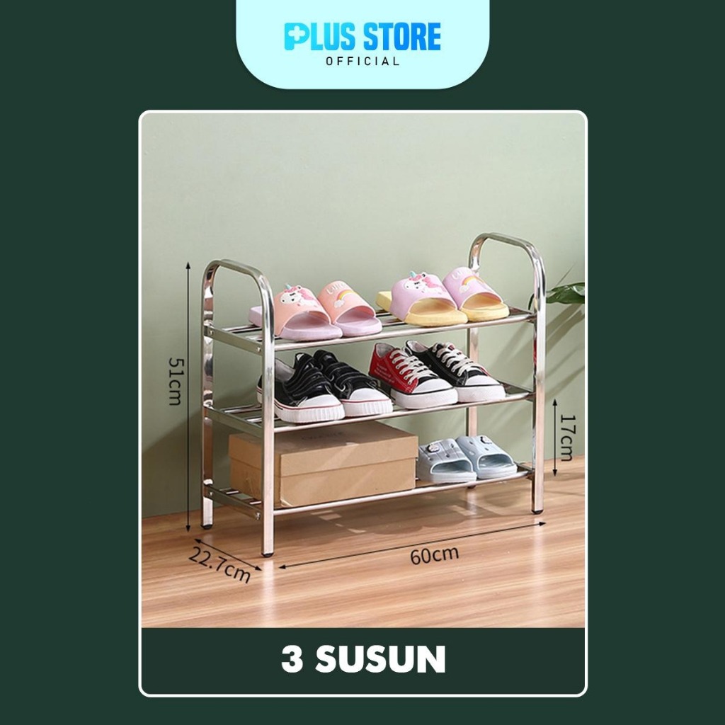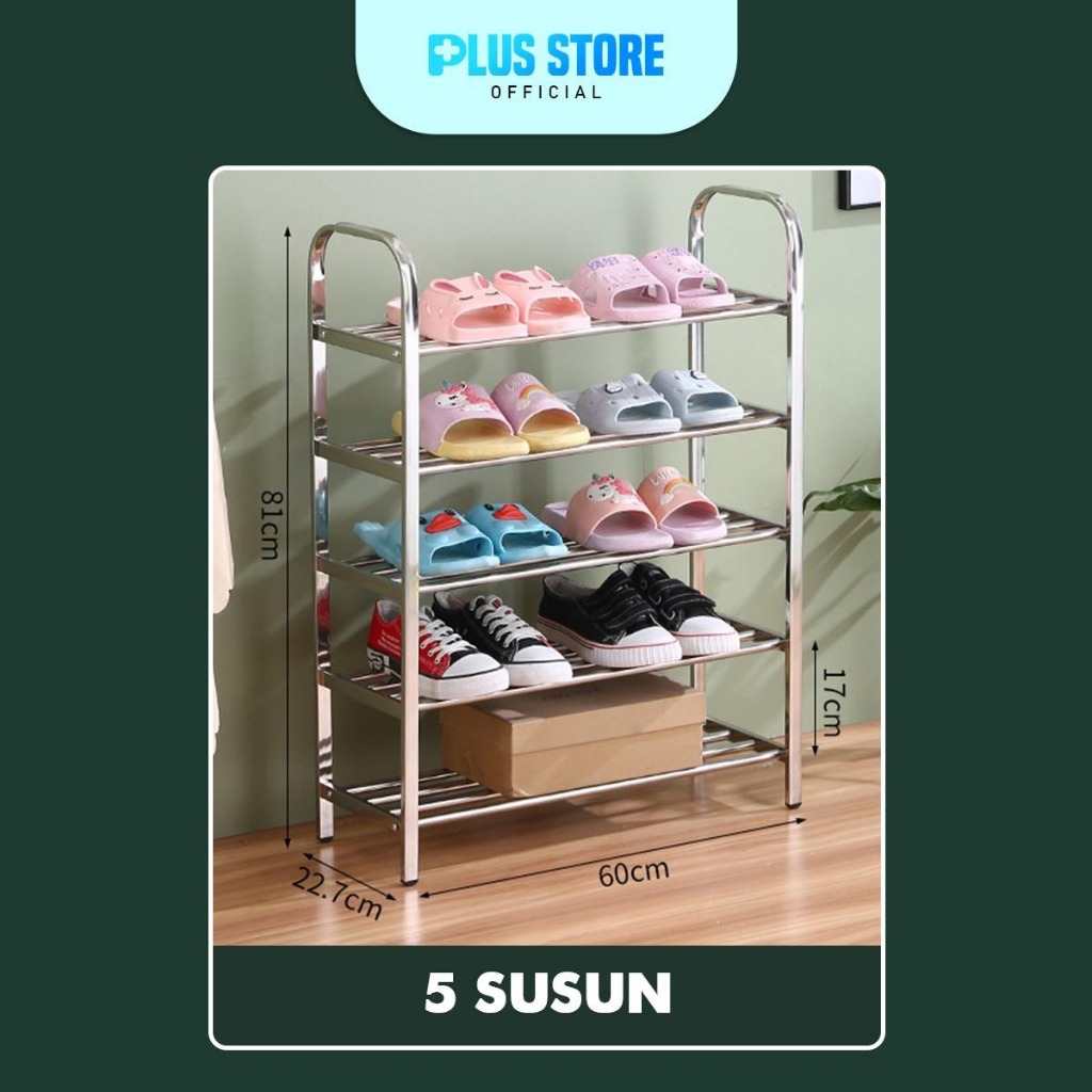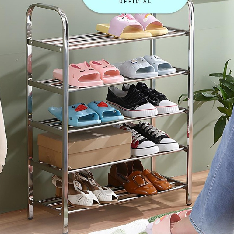Rak Sepatu Stainless Steel Multifungsi/ Tempat Sepatu Sendal Besi 3,4,5 Susun Anti Karat Kuat dan Anti Slip / Rak Sepatu Serbaguna.