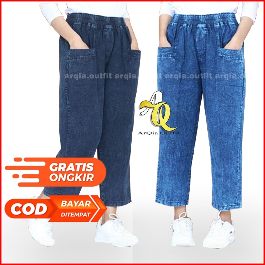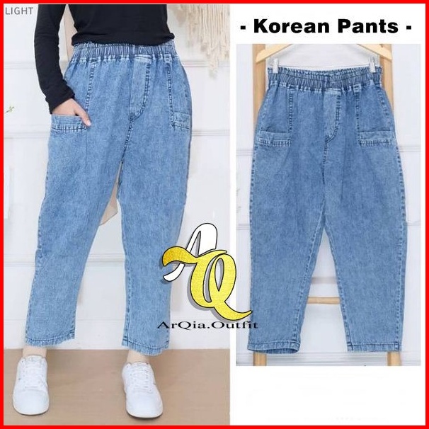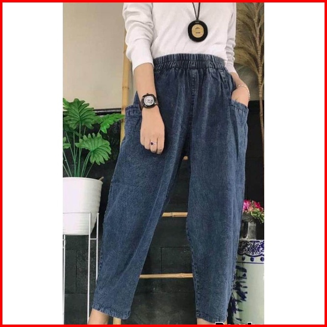 Celana Baggy Pants Jeans Celana Baggy Boyfriend Wanita Pinggang Karet Terbaru Kekinian Murah