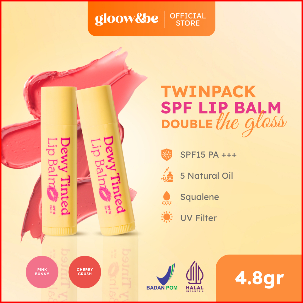 Bpom Twinpack Gloow Be Spf Dewy Tinted Lip Balm - Proteksi Bibir Sinar Uv Dengan Spf 15 Pa Ringan Mencerahkan Melembabka