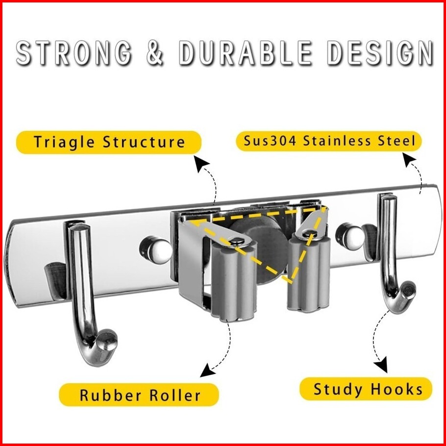 Bl Tempat Penjepit Gantungan Sapu Pel Dinding 4 Kait Mop Broom Holder Kapstok Stainless 304 Cantolan Sapu