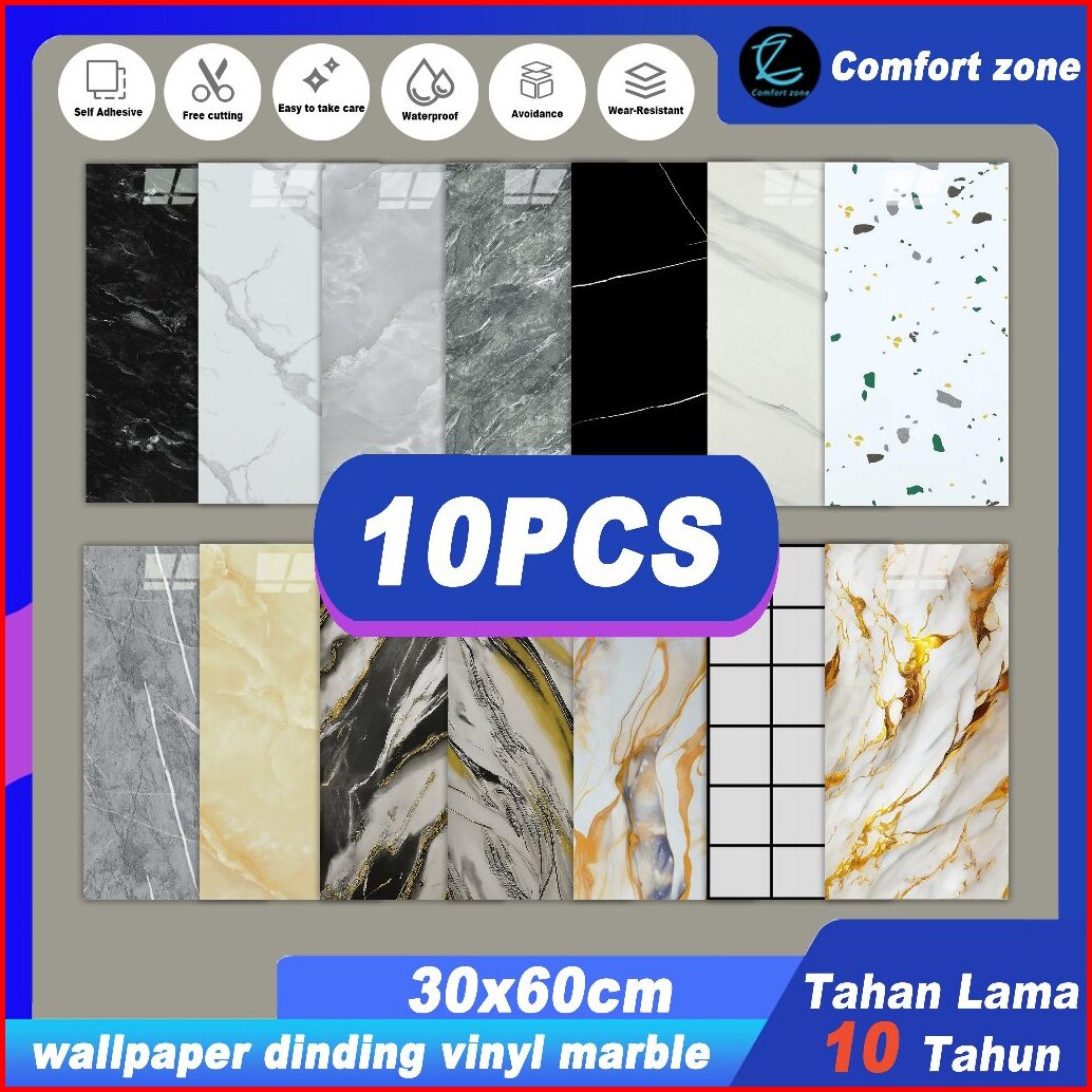 Comfort Zonepaket 10 Lembar 30x60 Cm Wallpaper Dinding Vinyl Marmer Granit Keramik 3d Tebal 3mm - Paket Wallpaper Dindin