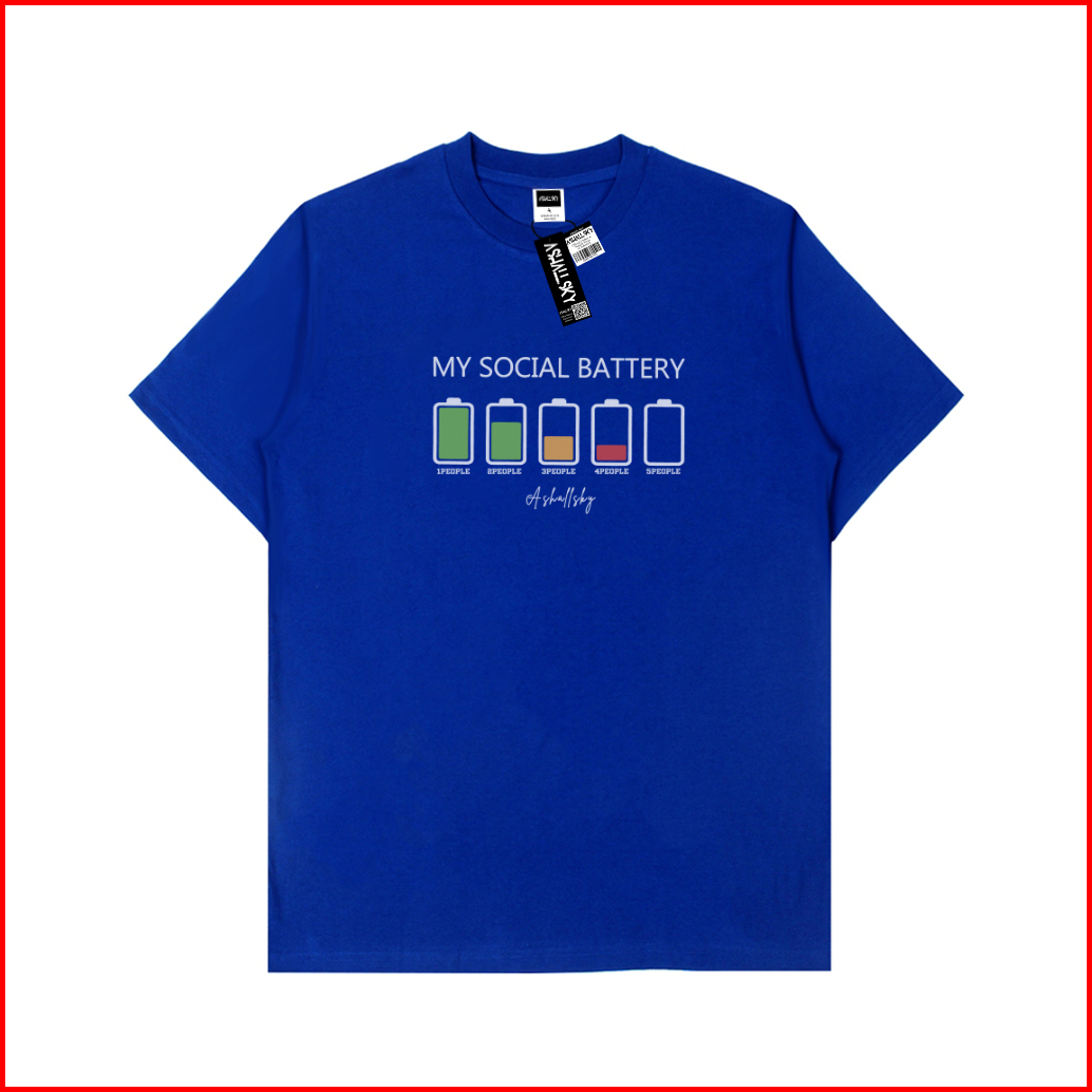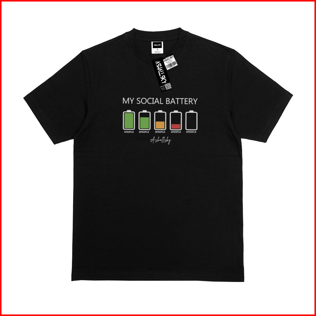 Ashall.sky Kaos Atasan Pria Wanita Motif My Social Batery Black T-shirt Distro Bahan Katun Combet 30s