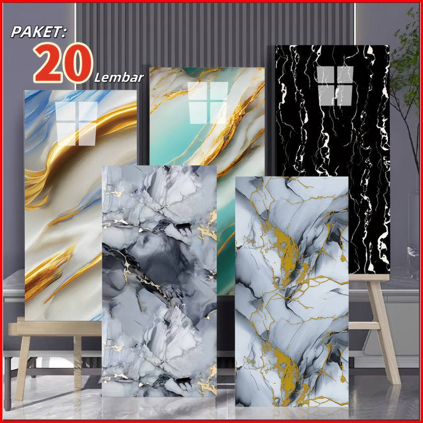 Paket 20 Lembar Vinyl Marble Wallpaper Dinding Granit 30x60 30x30cm Wallpaper Dinding Dapur Anti Air