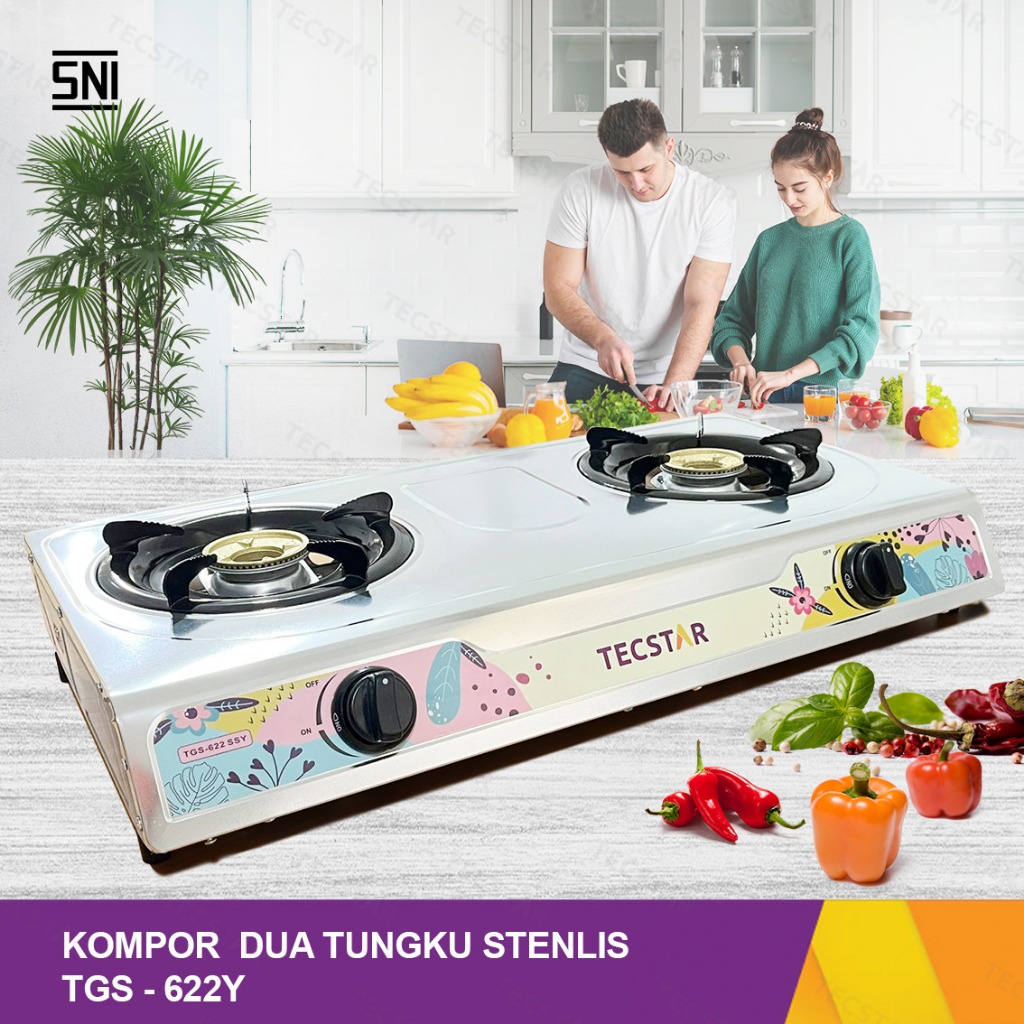 TECSTAR Kompor Gas 2 Tungku Stainless TGS-622 SSY Limited Edition Kuning Garansi 1 Tahun SNI