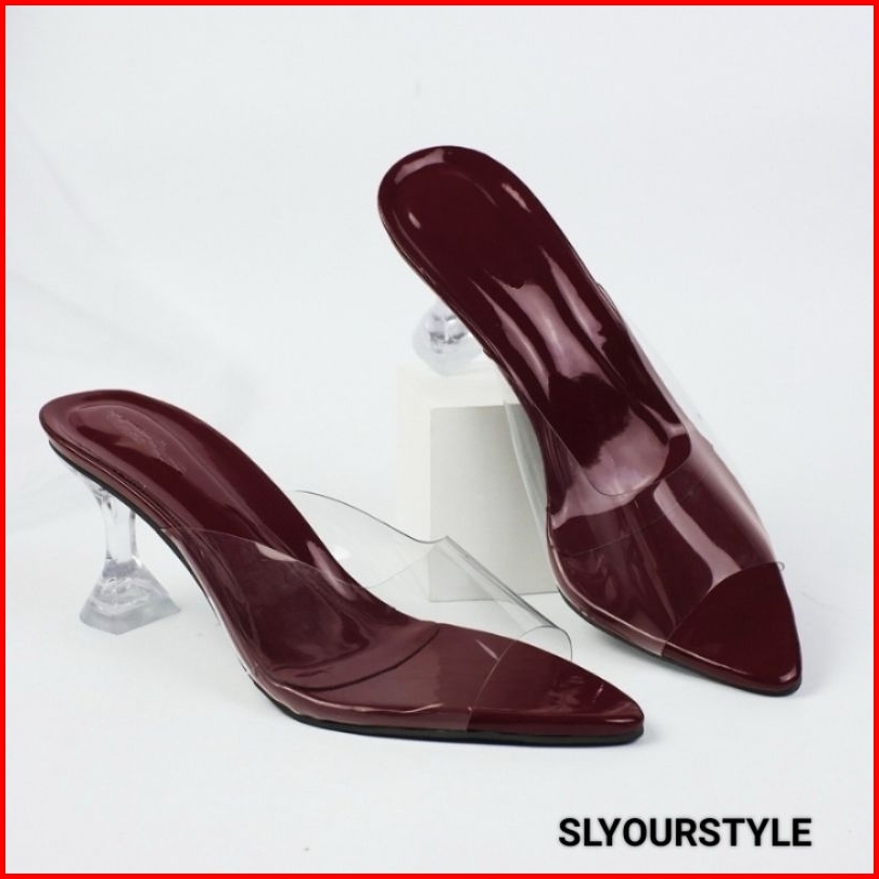 Sandal Wanita Heels Kaca Kerucut 7 Cm Sintetis Mika Kokop Bening Terlaris Bahan Glosy Terlaris Termurah Heels Cantik Hee