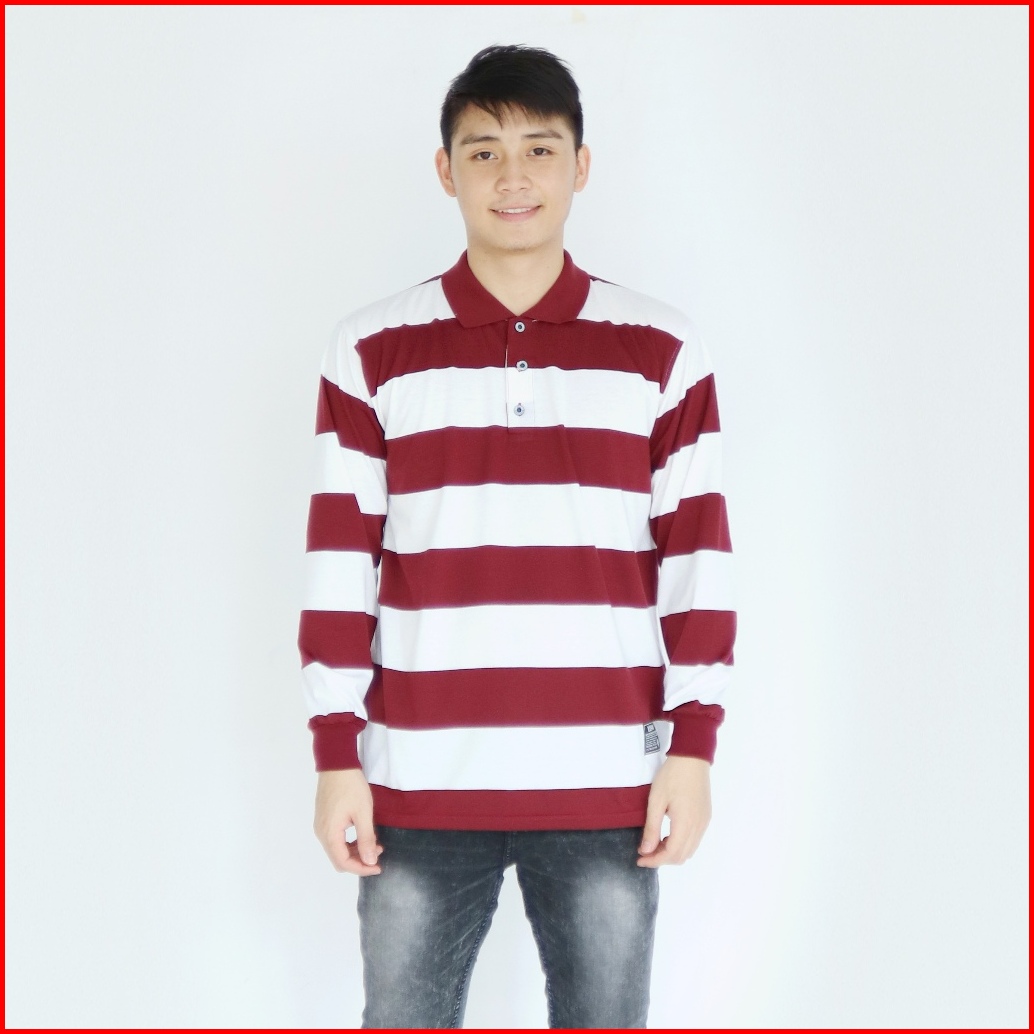 Liso Wear - Kaos Kerah Pria Distro Stripe Engineering Polo Shirt Saku Salur Lengan Panjang