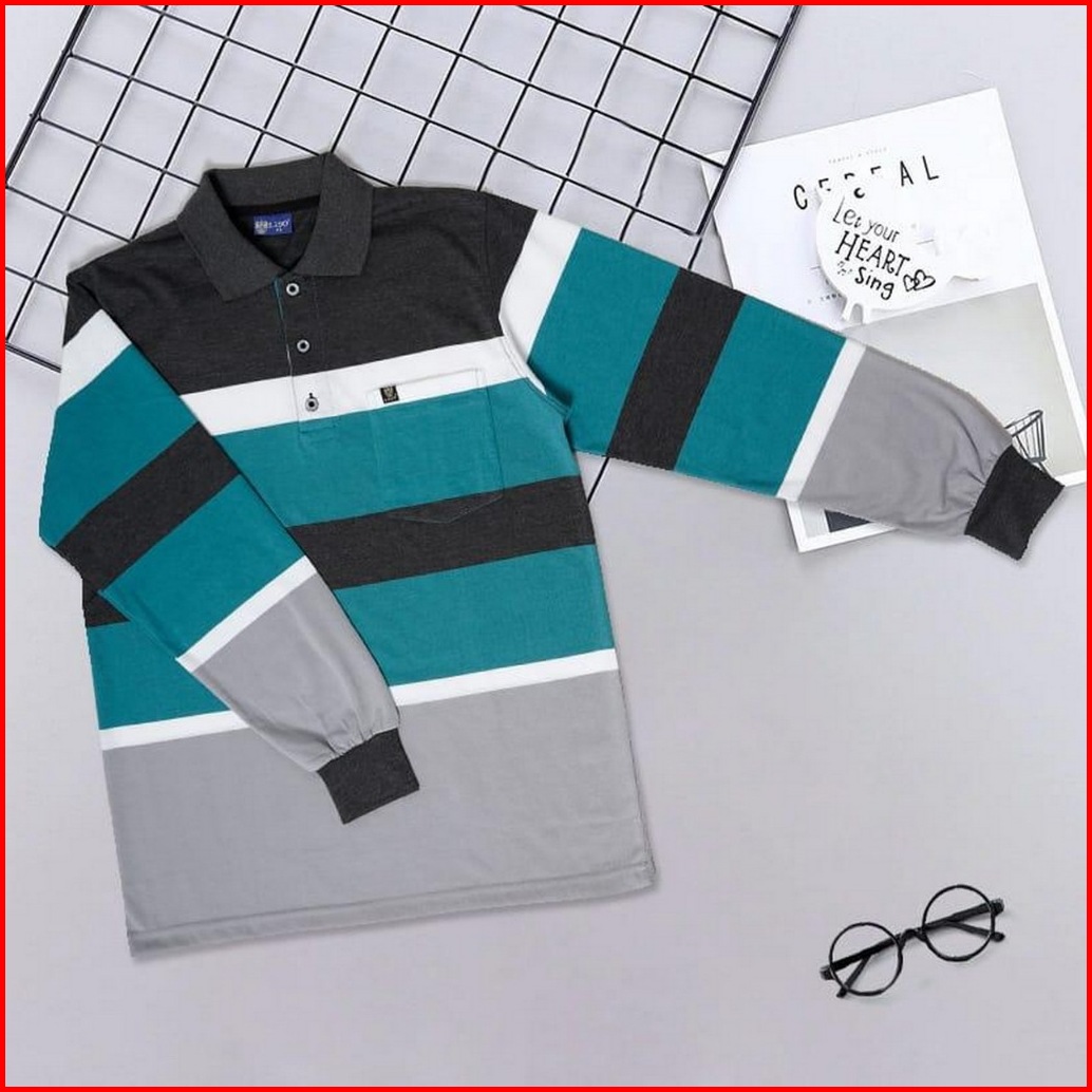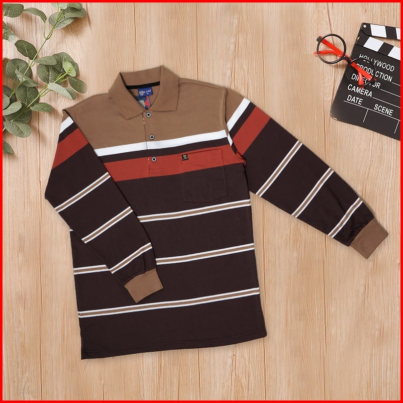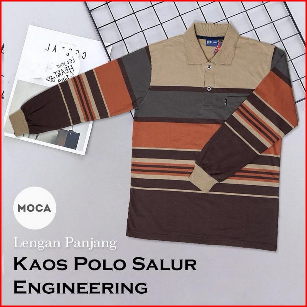 Liso Wear - Kaos Kerah Distro Motif Salur Lengan Panjang Pria Polo Shirt Stripe Engineering 7879