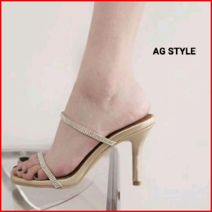 Sandal Heels Hak Lancip Tinggi 9 Cm Mutiara Permata Mewah Termurah High Heel Kondangan Pesta Wedding
