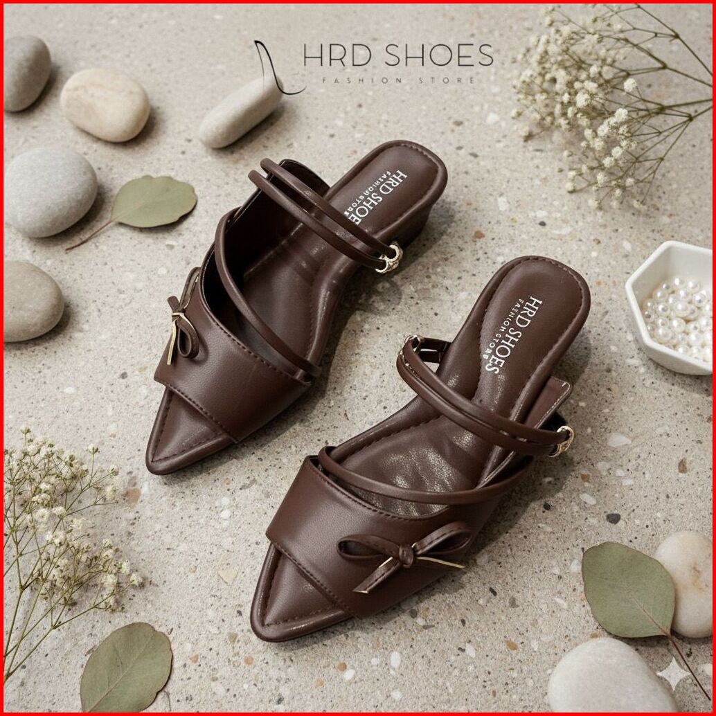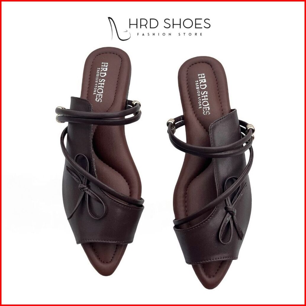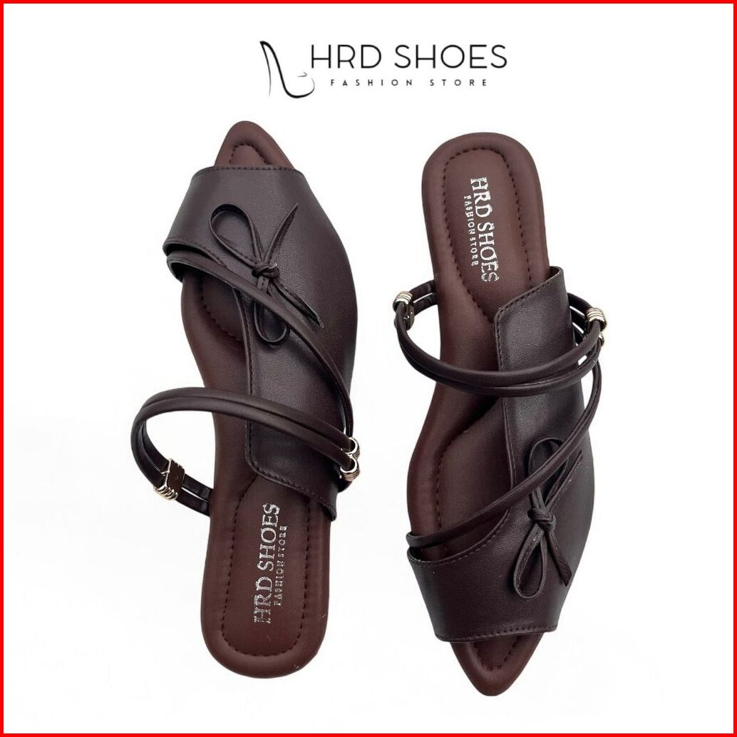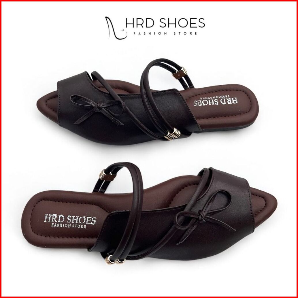 Sandal Flat Mules Pita Brown Flatshoes Wanita Pita Pinggir Hrd Shoes
