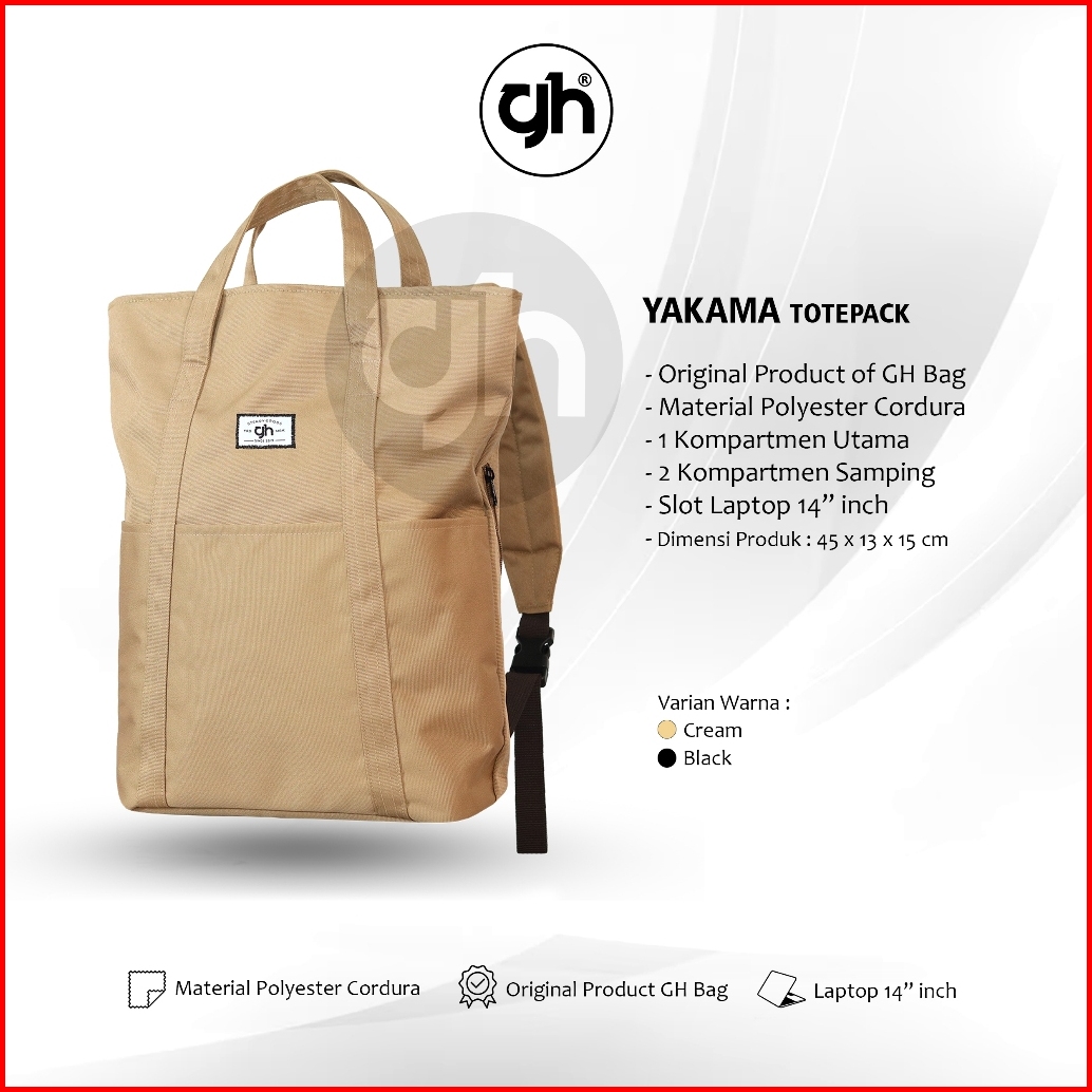 Gh-bag Yakama Totepack Totebag Backpack Tas Ransel Tas Sekolah Tas Kuliah Tas Laptop 14 Inch