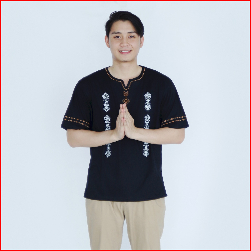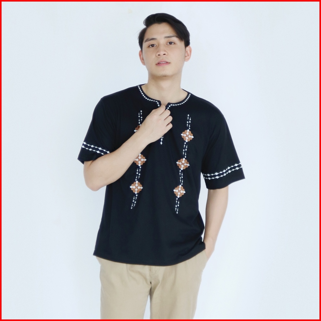 Liso Wear - Baju Koko Uj Bordir Motif Batik Lengan Pendek Baju Kaos Muslim Pria Size L Xl