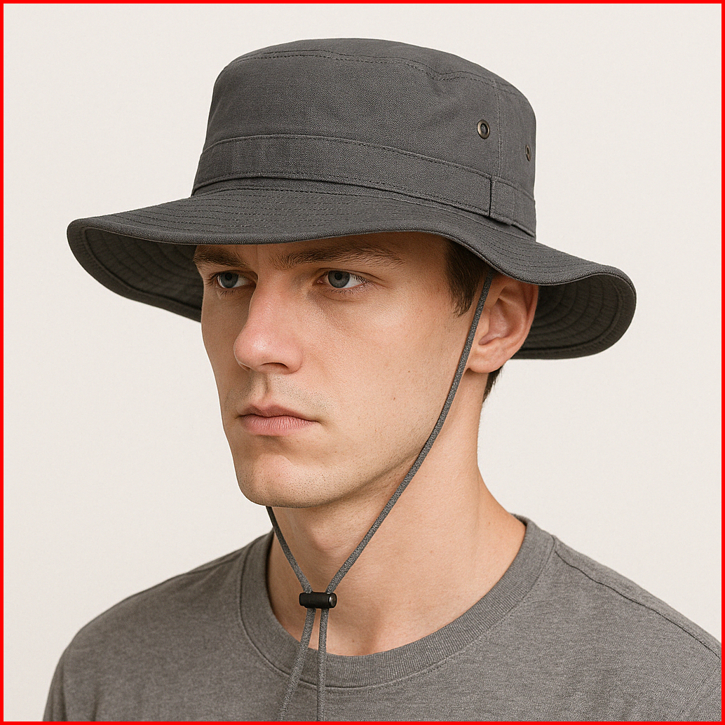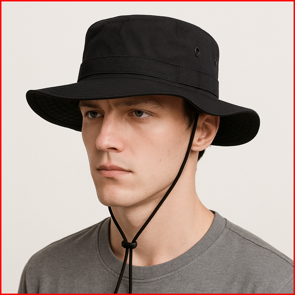 Topi Rimba Mancing Gunung Outdoor Pria Wanita Bucket Hat Hitam Tali Dagu Anti Panas Travel Hiking