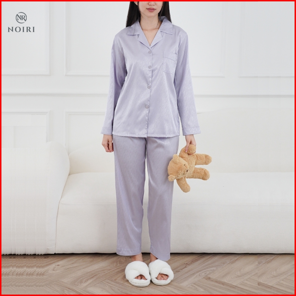 Noiri - Baju Tidur Lengan Panjang Celana Panjang Setelan One Set Wanita Dewasa Motif Polos Minimalis Korean Style Piyama