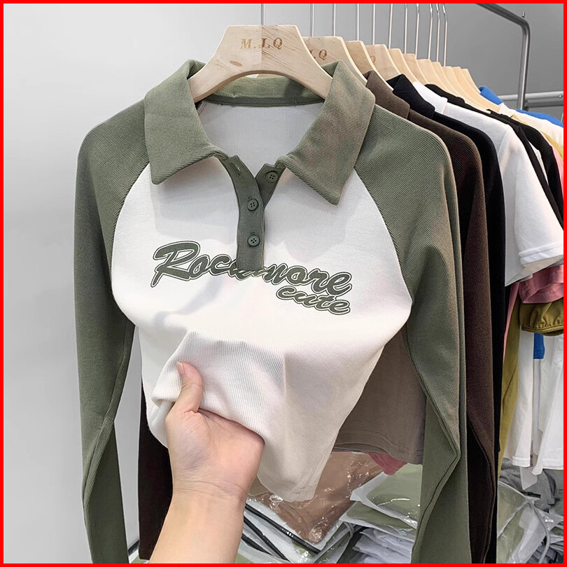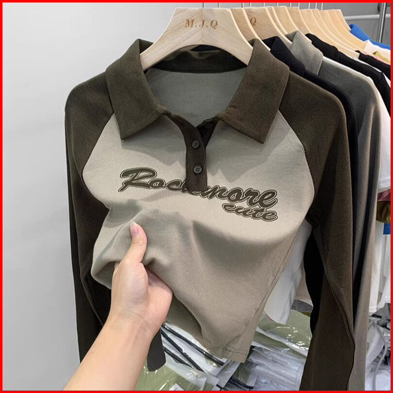 Kaos Kerah Polo Lengan Panjang Berwarna Coklat