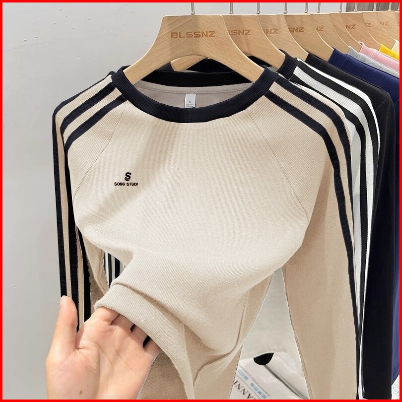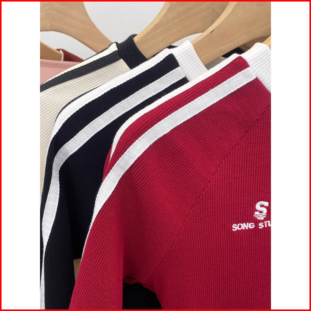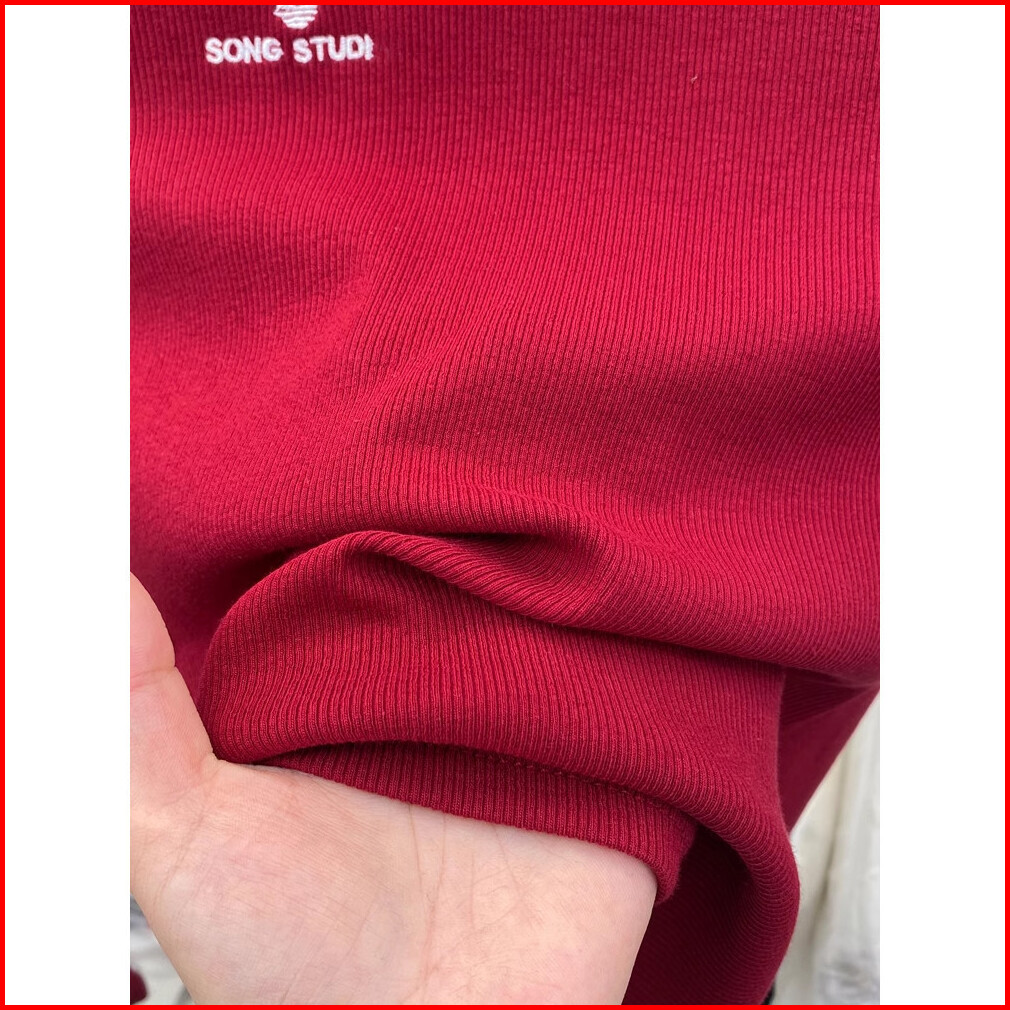 Kaos Bordir Crew Neck Lengan Panjang Berwarna Merah