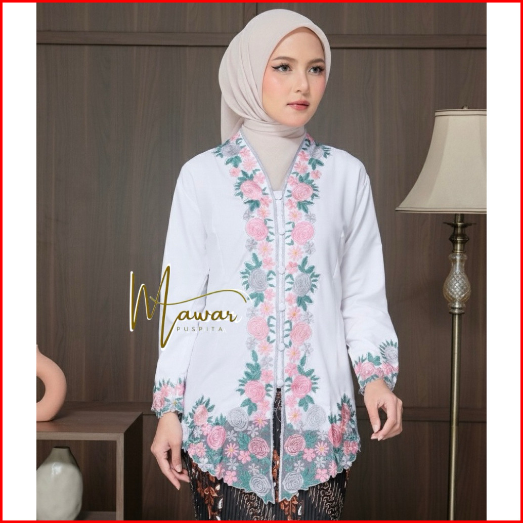 Mawar Puspita - Kebaya Encim Bordir Warna Bunga Mawar Lengan Panjang