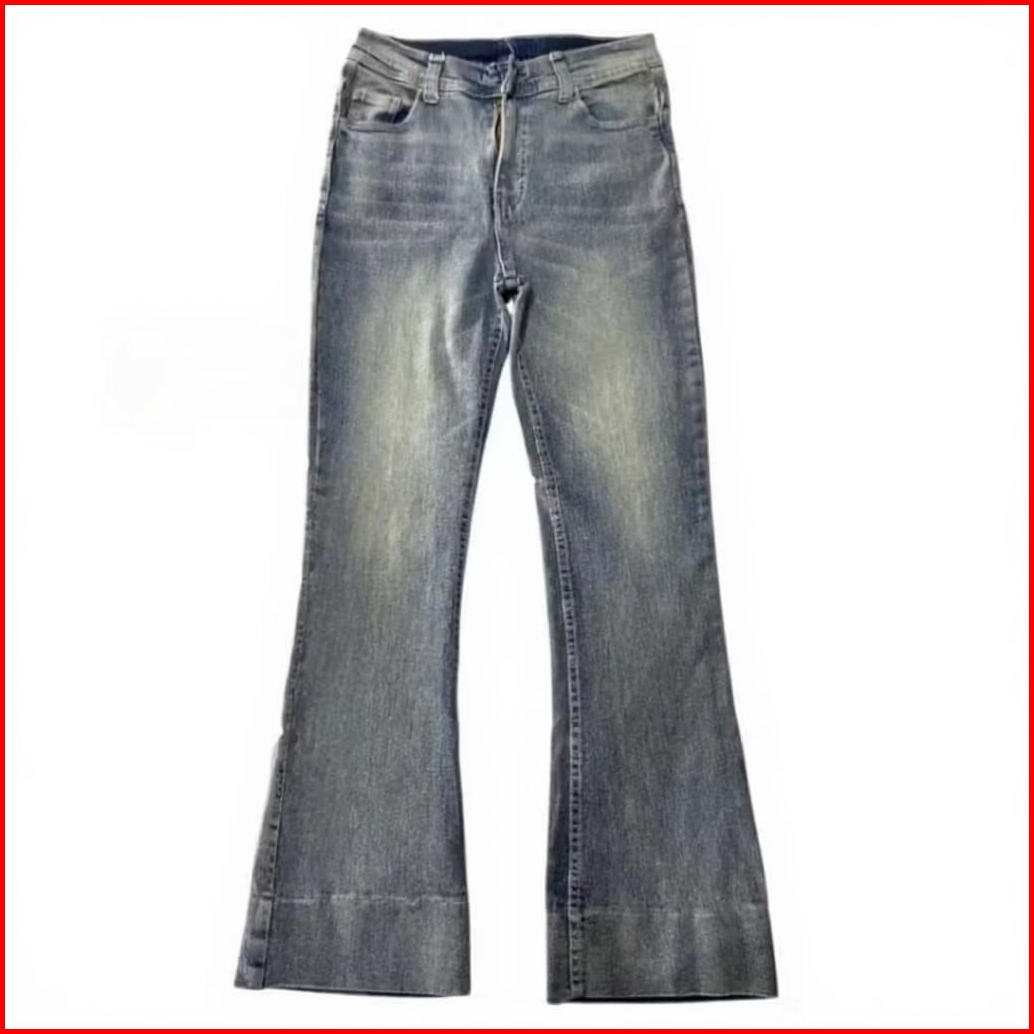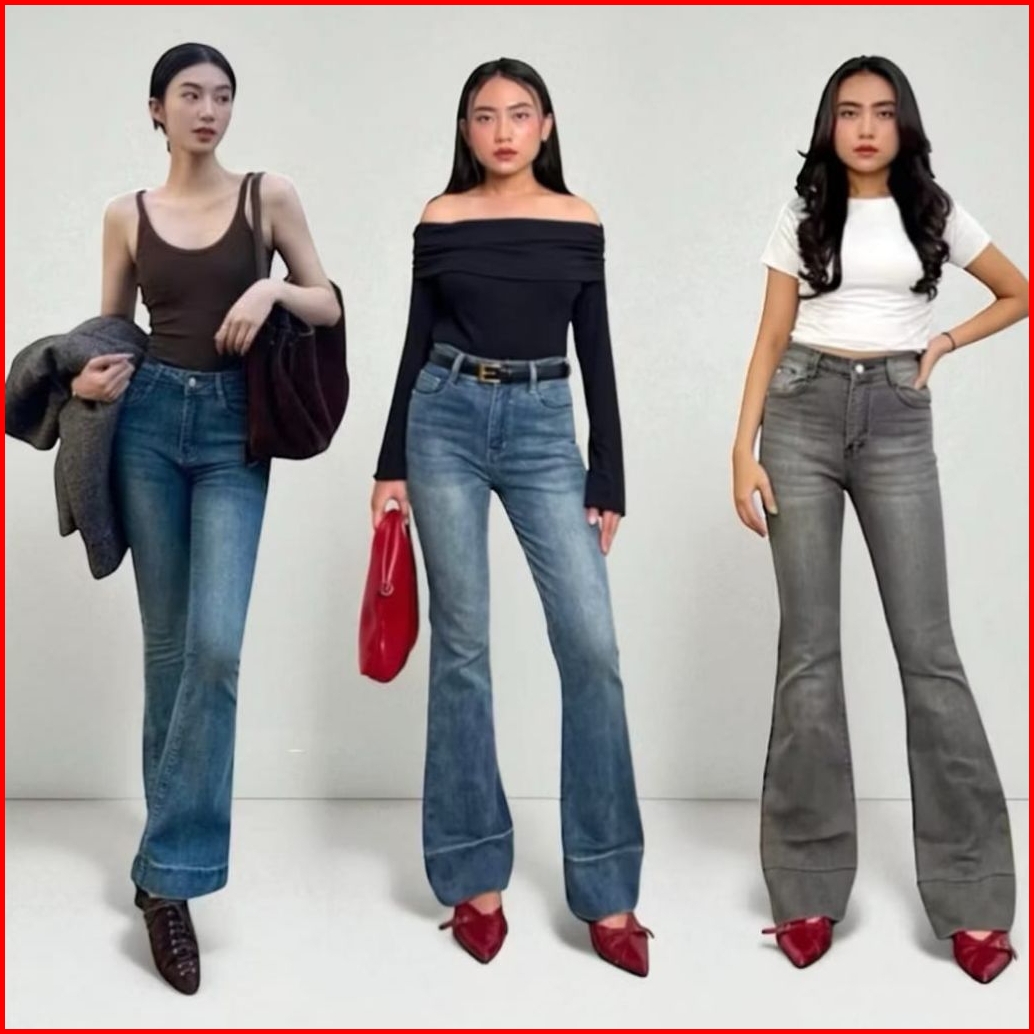 Zl - Cutbray Jeans Wanita Lipat Highwaist Retro Model Kekinian Hitam Retro
