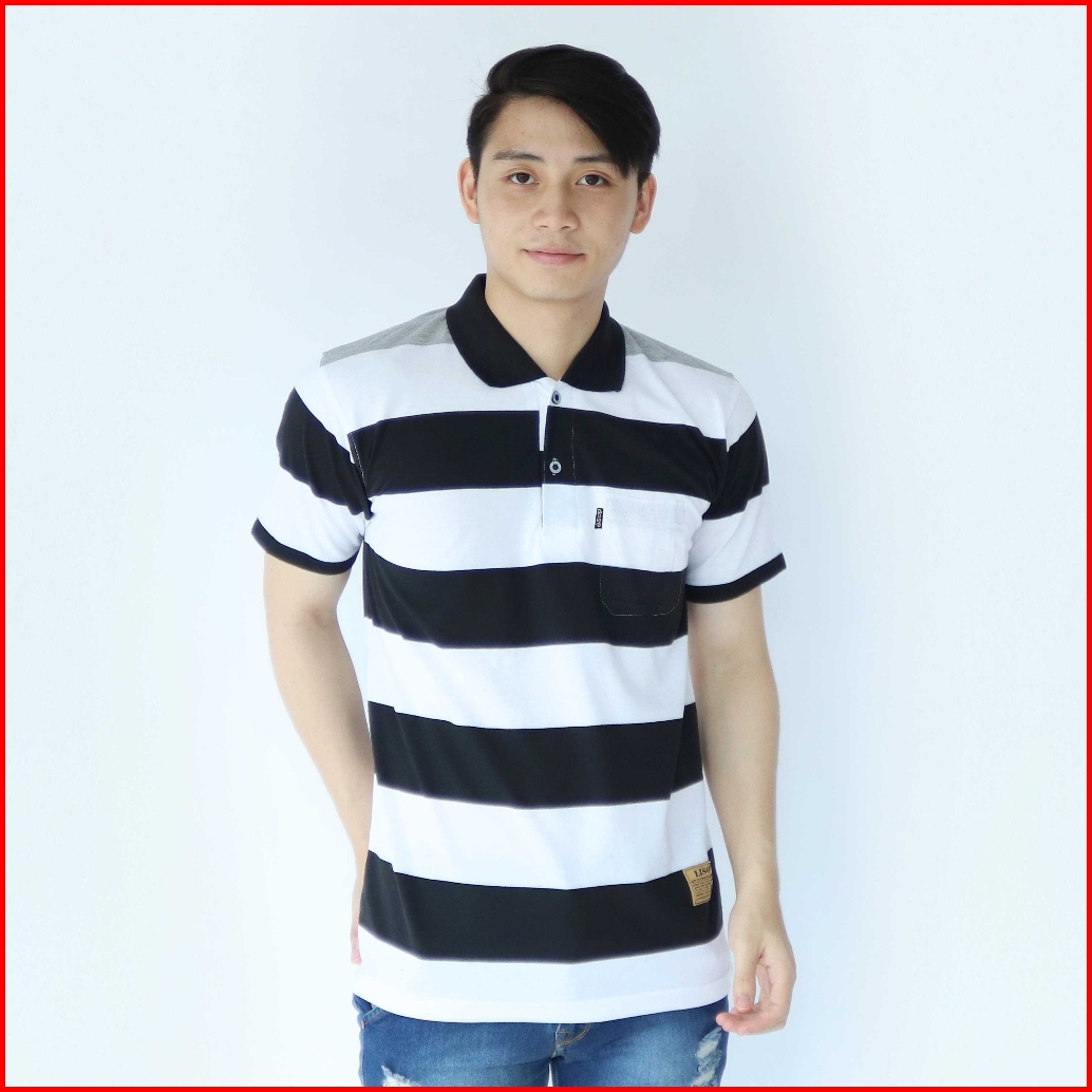 Liso Wear - Kaos Kerah Pria Kaos Salur Engineering Stripe Balok Saku Lengan Pendek 7887