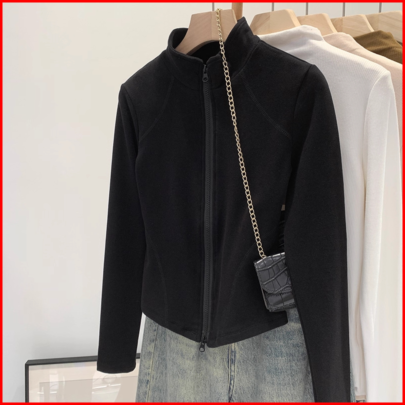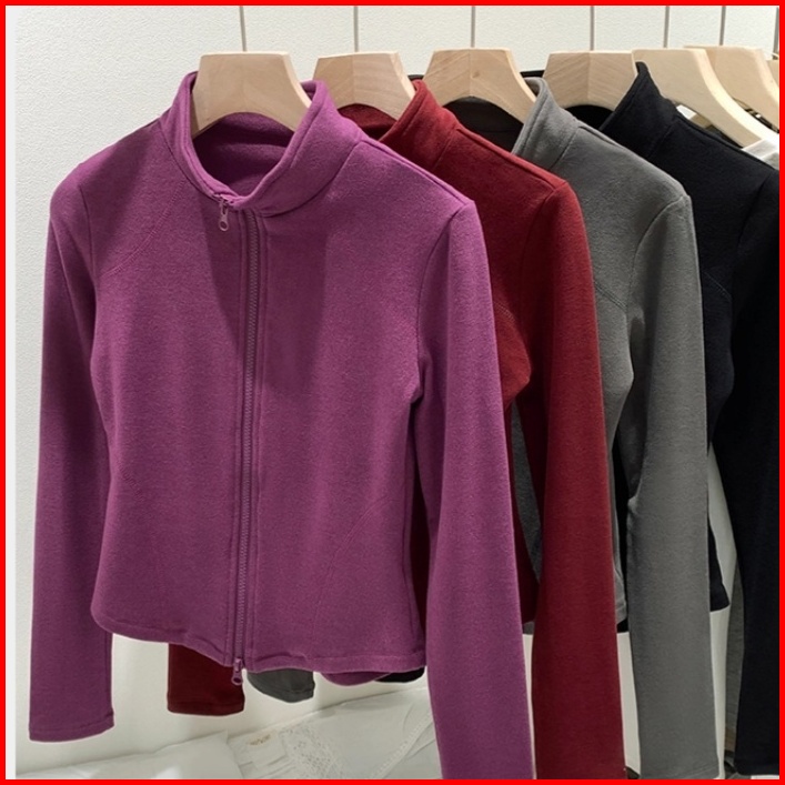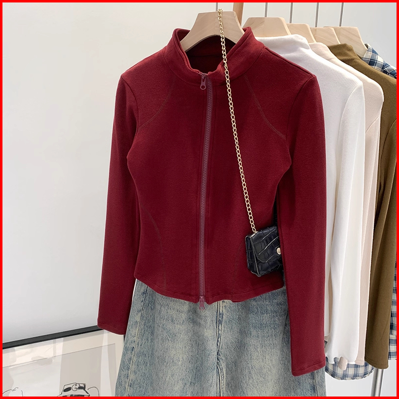 Hoodie Turtleneck Merah Lengan Panjang Berkualitas Tinggi