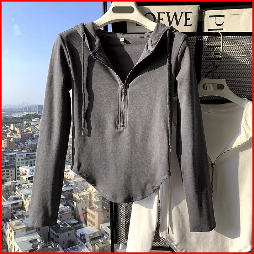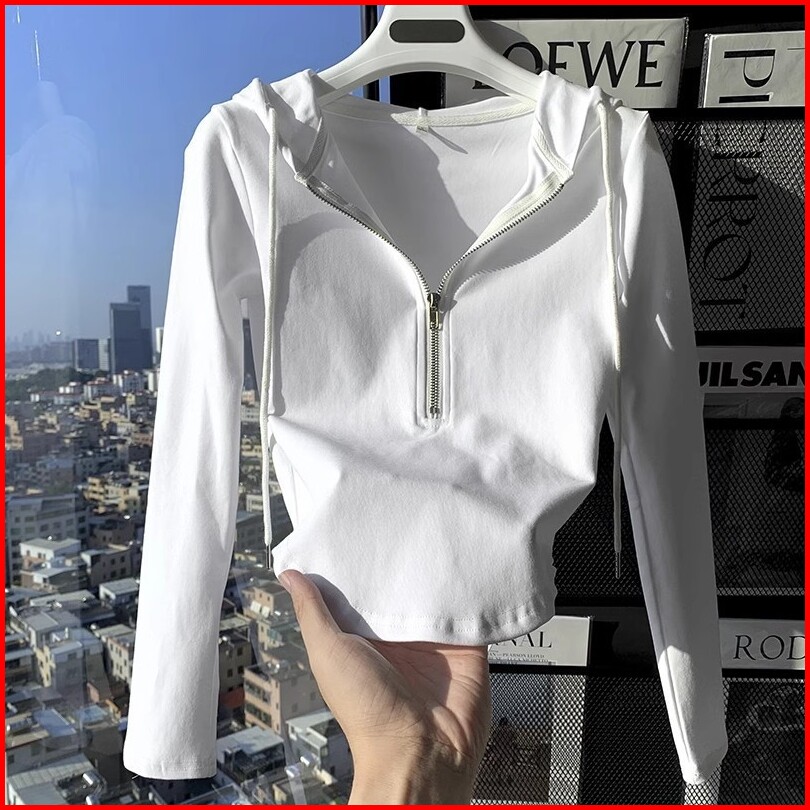 Hoodie Setengah Resleting Putih Premium