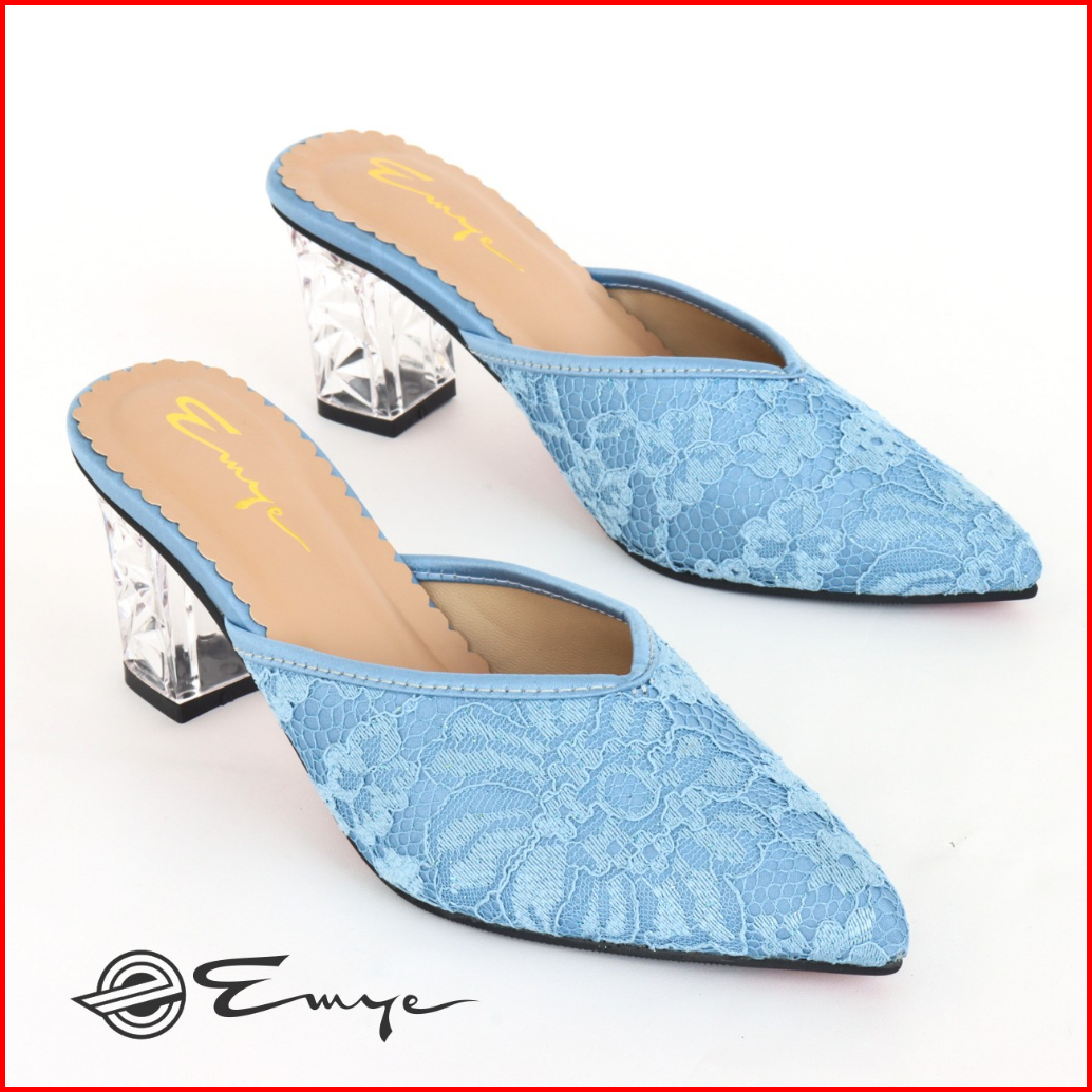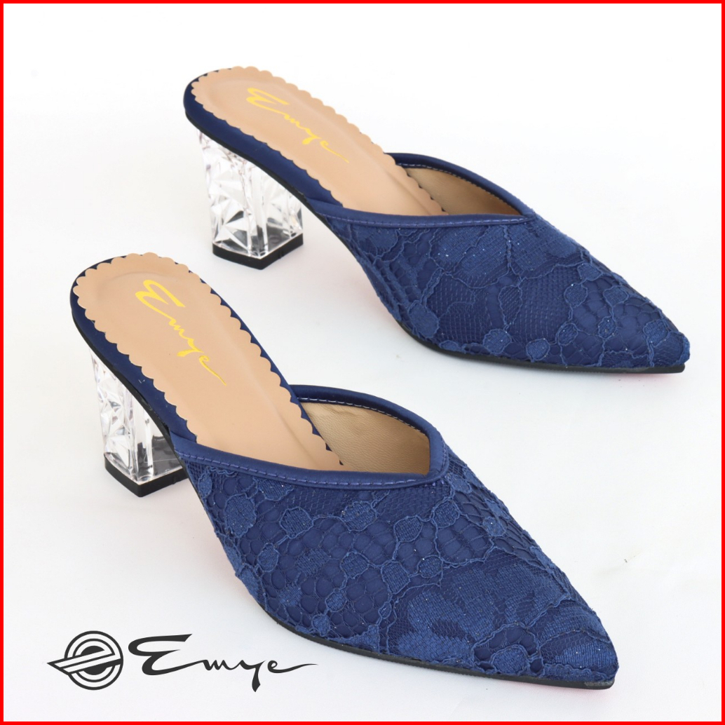 Sendal Pesta Wanita Hak Kaca 7cm Wisuda Pengantin Kondangan Brukat Teracota Denim Taro Glitter 36-41 - Emye