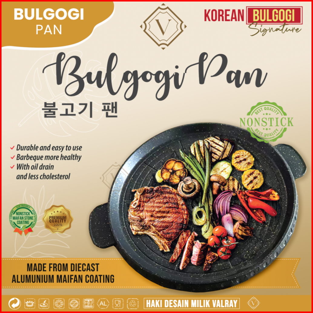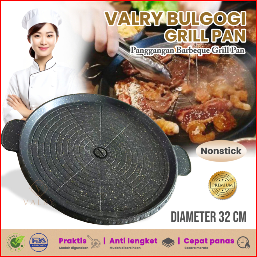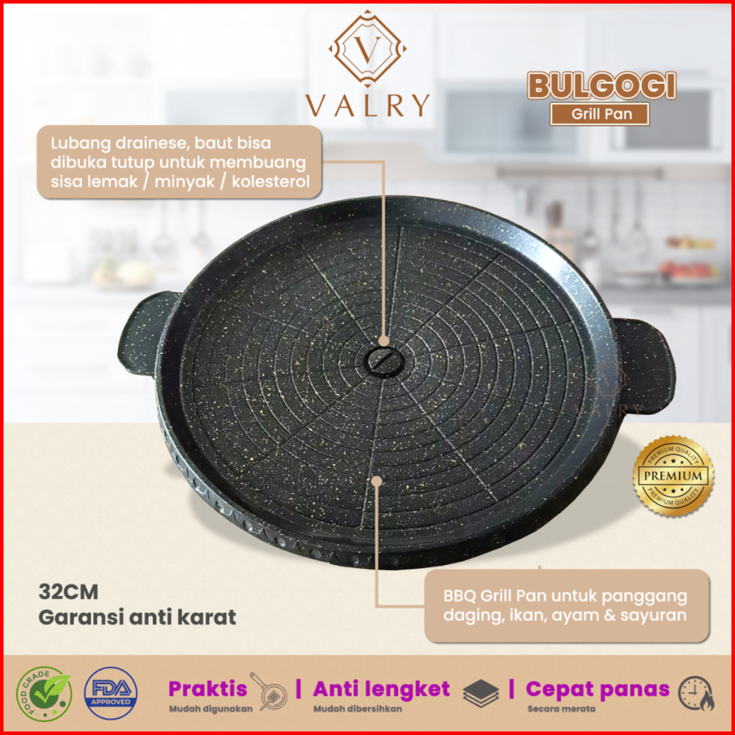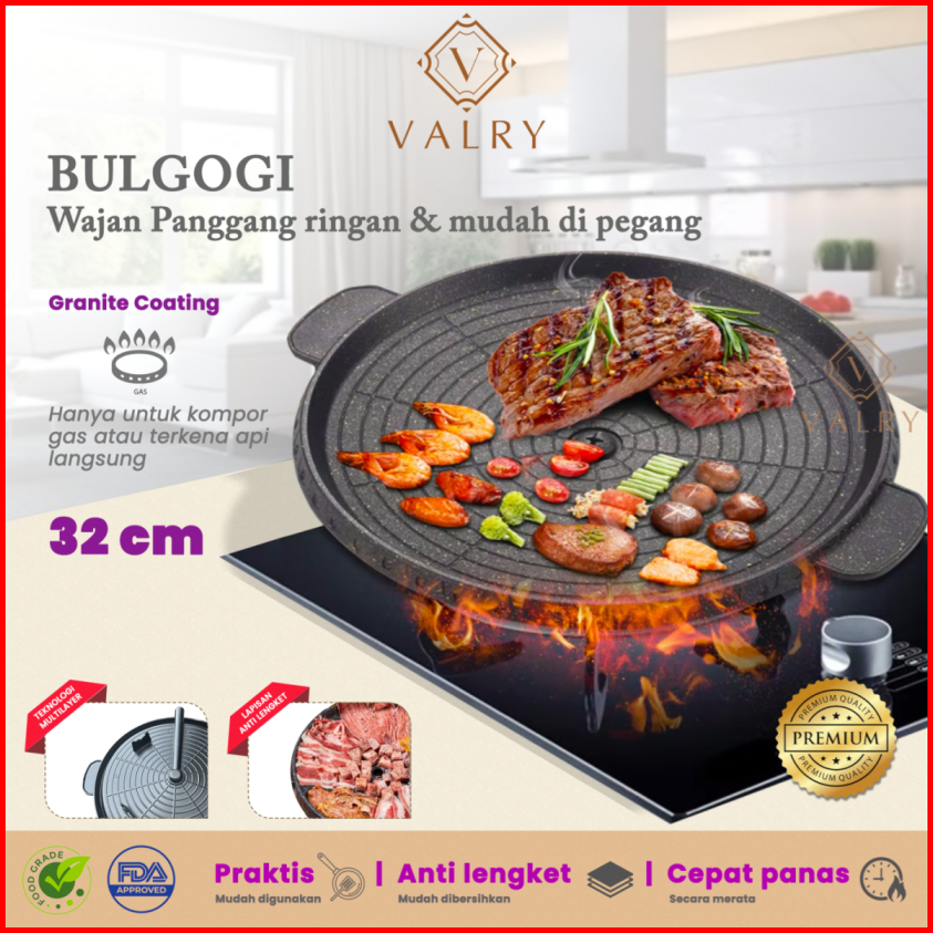 Bulgogi Grill Pan 32cm Alat Panggang Bbq Wajan Anti Lengket Panci Pemanggang Daging Valry Marble