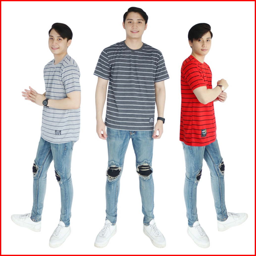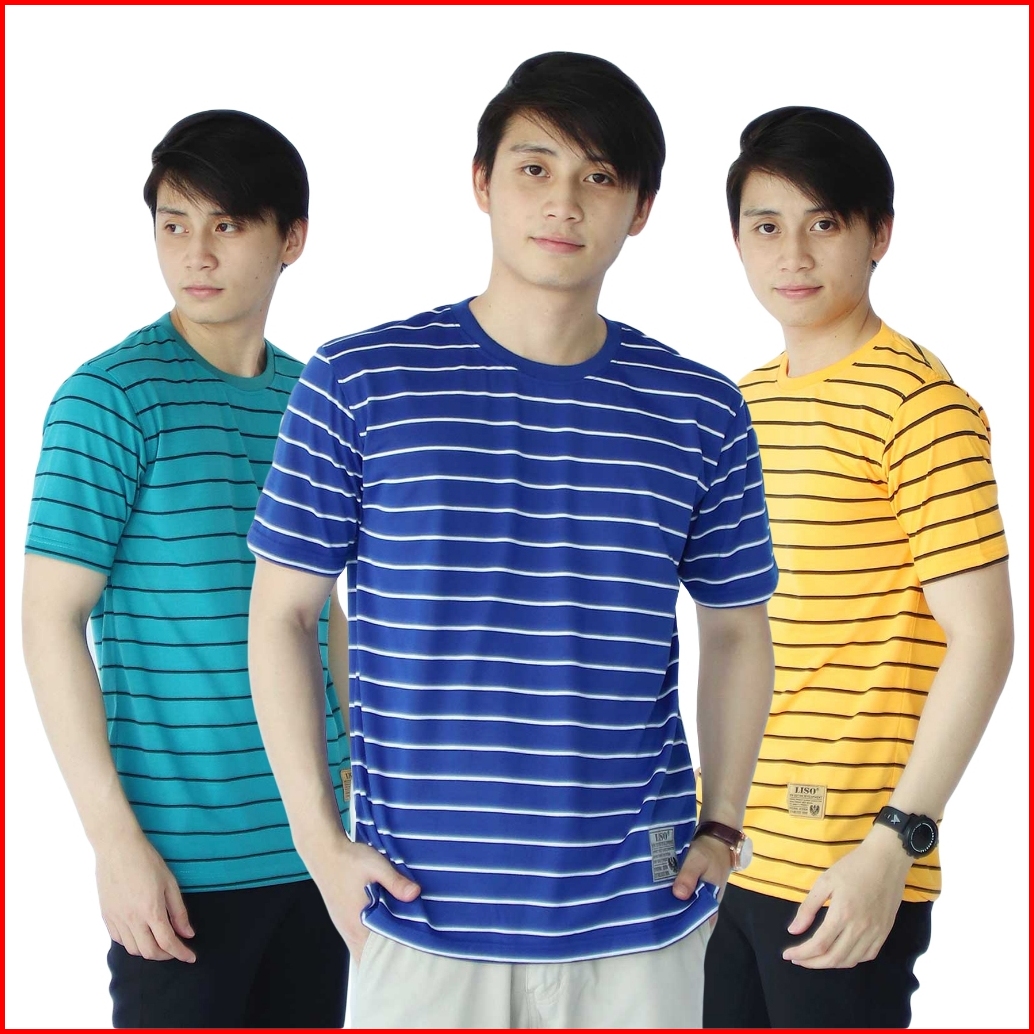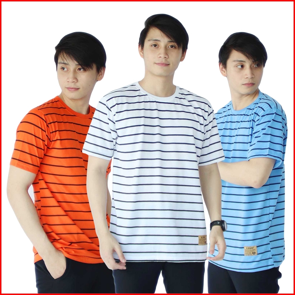 Liso Wear Paket 3pcs Atasan Pria Katun Kaos Distro Motif Stripe Garis Belang Belang Lengan Pendek