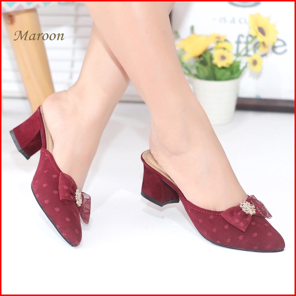 Emye Sandal Pesta Bustong Wanita Tulle Dot Hak Tahu 5cm Terbaru Murah Mewah