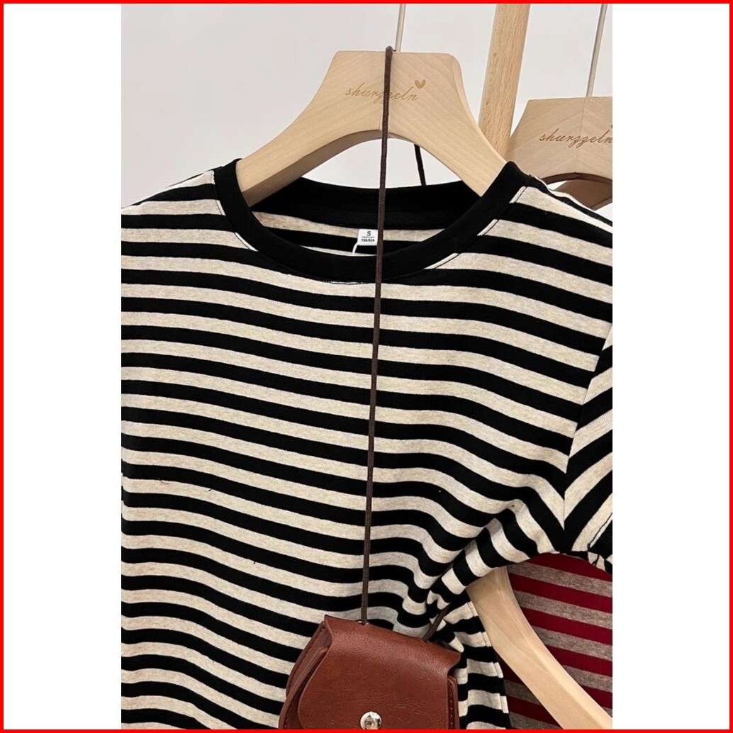 Kaos Premium Melar Leher Bulat Lengan Pendek Bergaris Merah