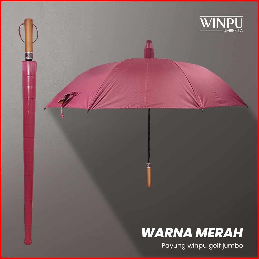 Winpu Payung Golf Otomatis Buka Tutup Premium Gagang Kayu