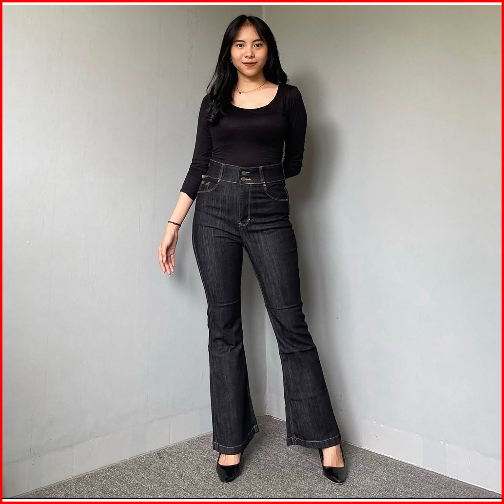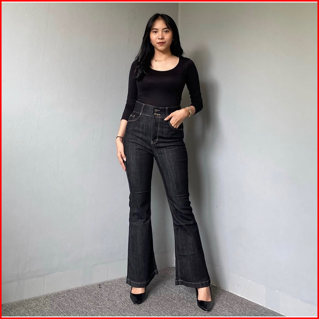 Cutbray Haigwaist Kancing 2 Black Garment Cutbray Wanita Haighwaist