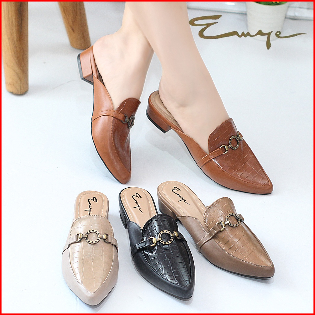 Emye - Sendal Mules Wanita Hak 3cm Sepatu Formal Wanita Original