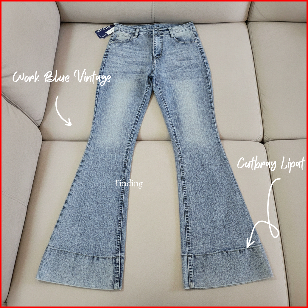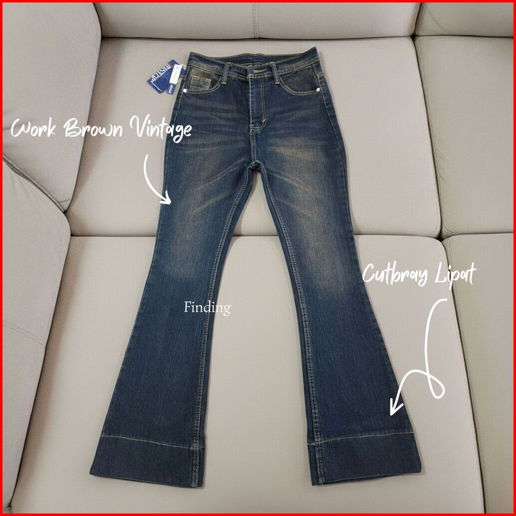 Finding - Jennie-highwaist Cutbray Jeans Celana Flare Panjang Stretch Wanita Retro Vintage Lipat Bawah