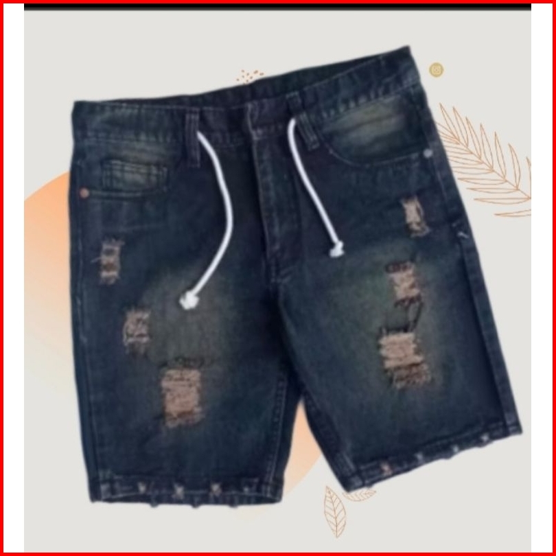 Celana Jeans Pendek Sobek Pria Wisker Ripped Robek Premium Denim Tali