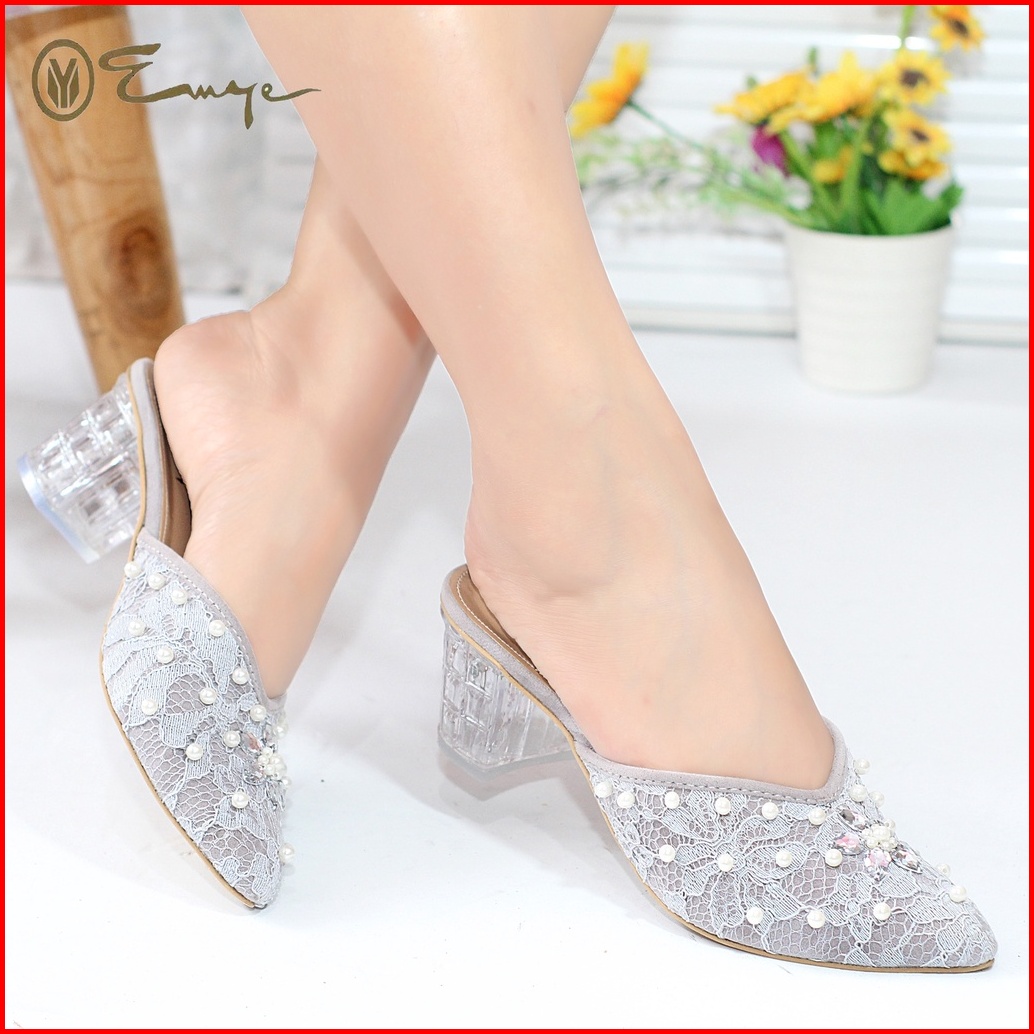 Emye Mote55 - Sepatu Wedding Pengantin Wanita Brokat Glitter Payet Hak Kaca 5cm