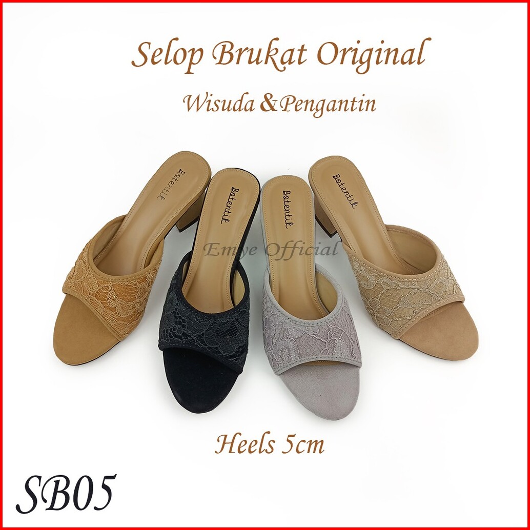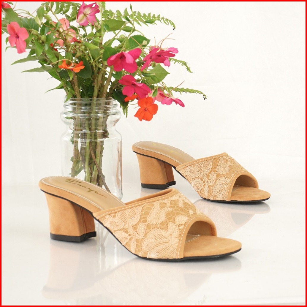 Emye - Sandal Heels Pesta Wanita 5cm Brukat Wisuda Pengantin Original