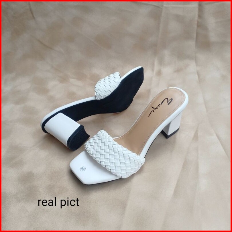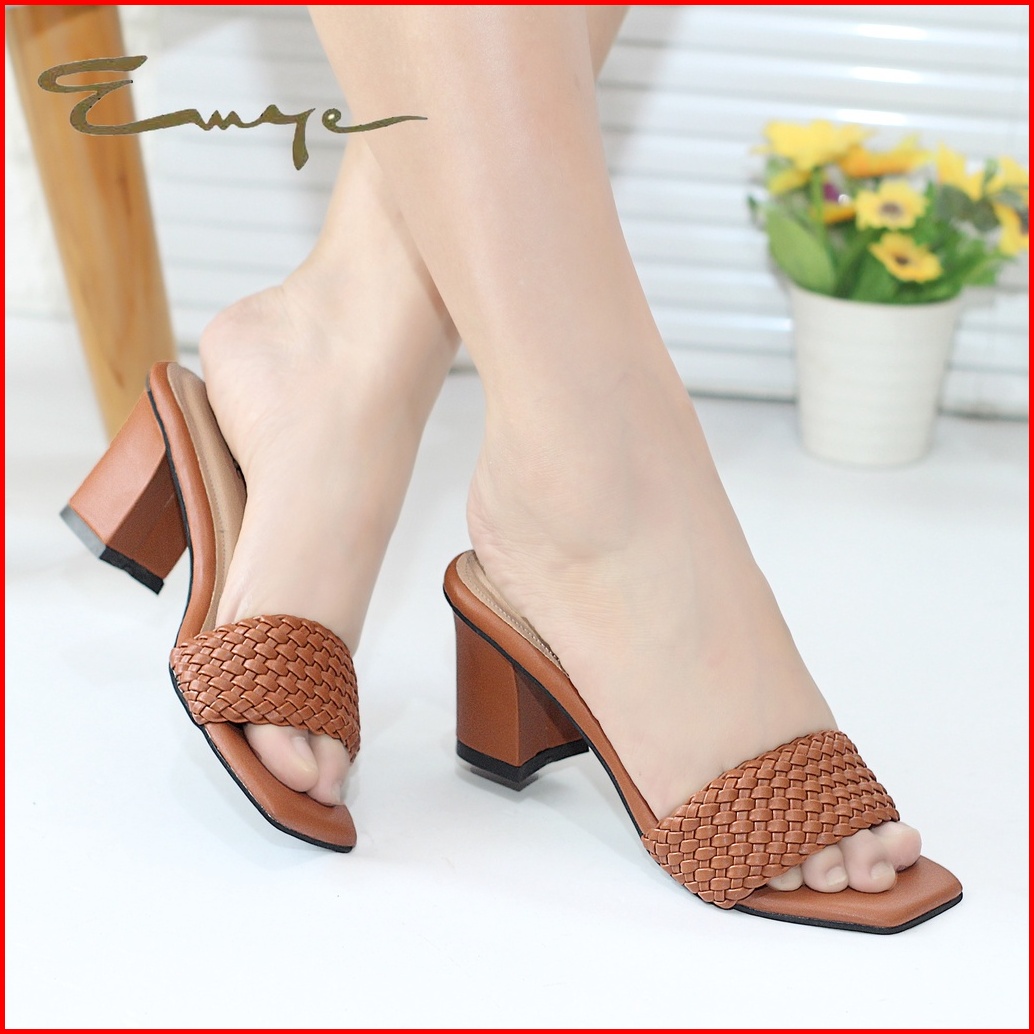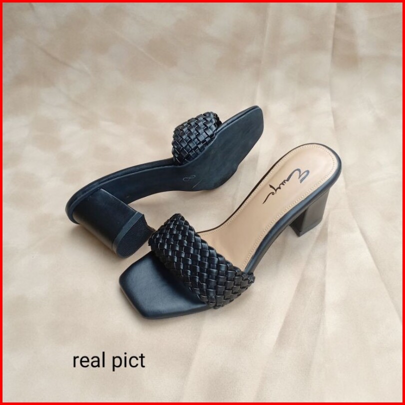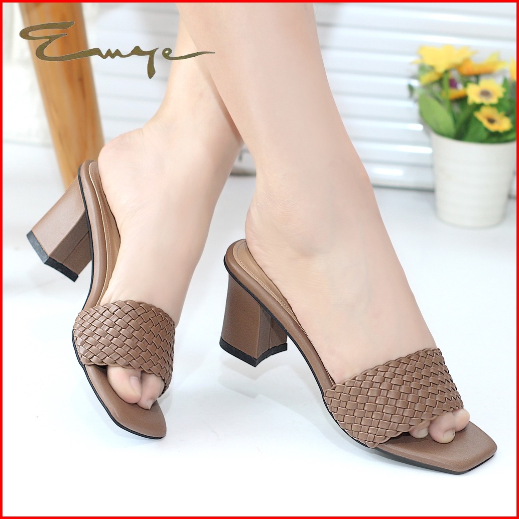 Emye - Sandal Heels Pesta Wanita Kondangan Kepang Hak Tahu 5 7cm Wanita Anyam Kekinian Elegan Terbaru